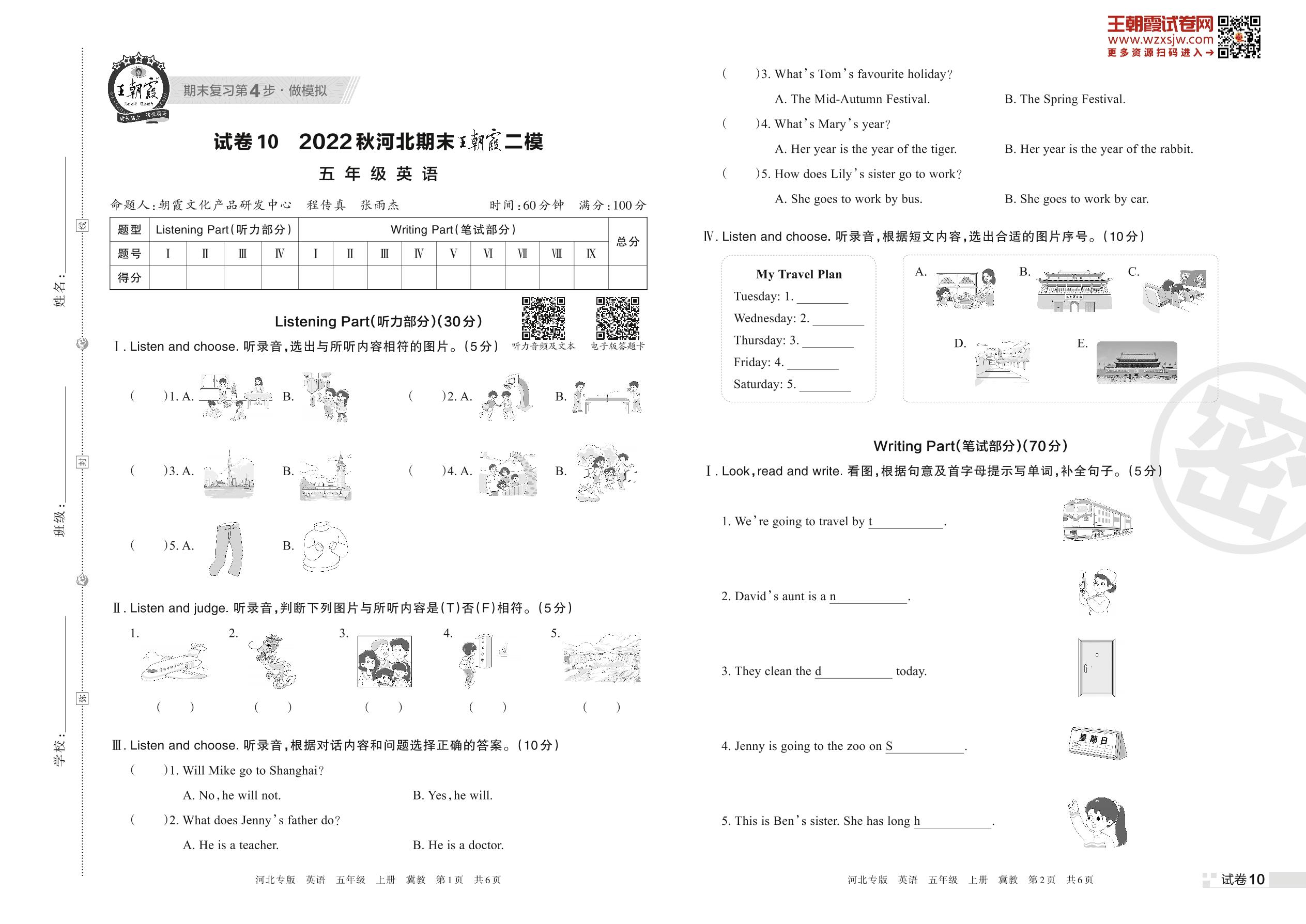 王朝霞期末模拟卷五年级上册英语(冀教版)_R221124115744780【10】