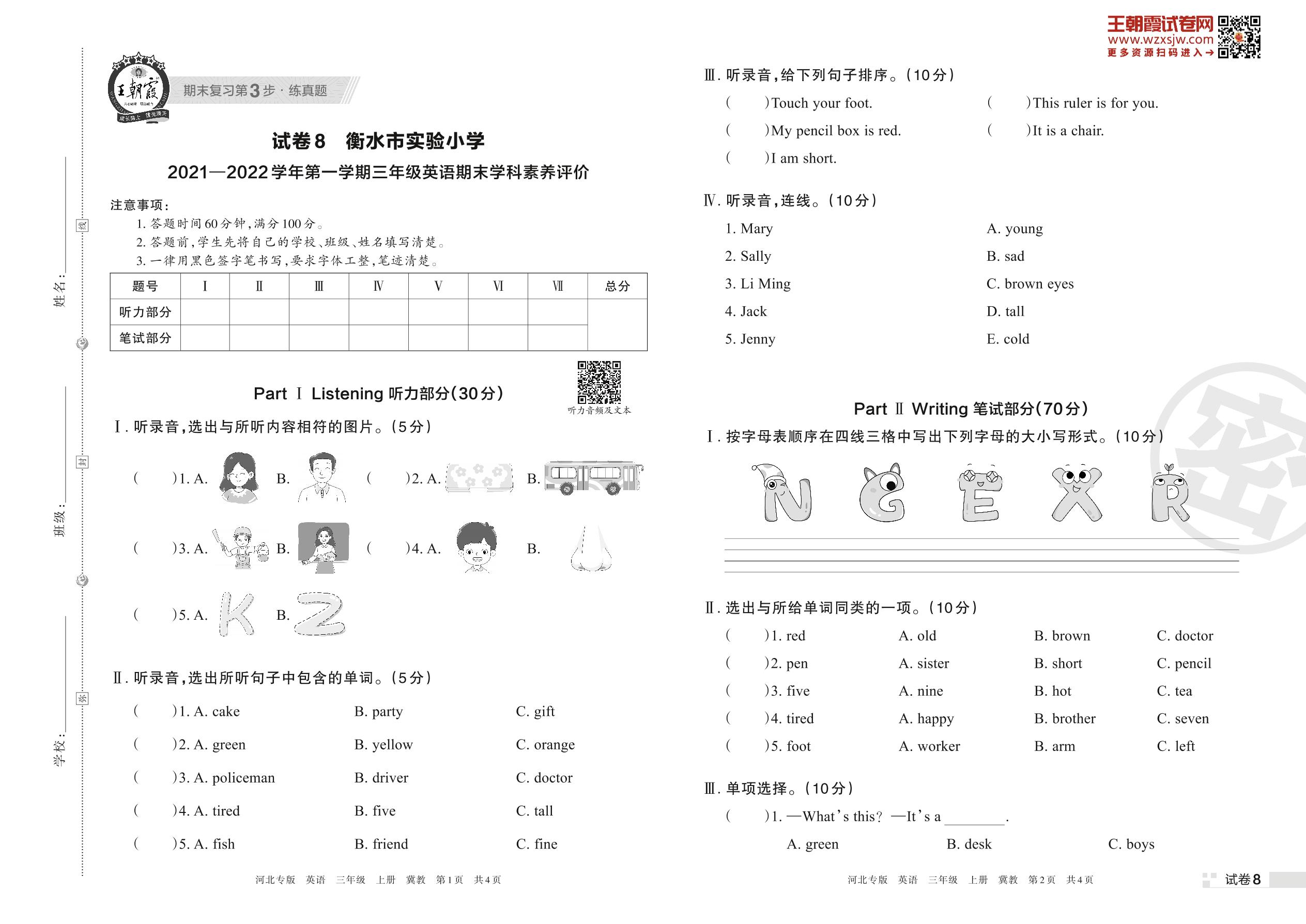 衡水市实验小学2021—2022学年第一学期三年级英语期末学科素养评价(冀教版)【8】