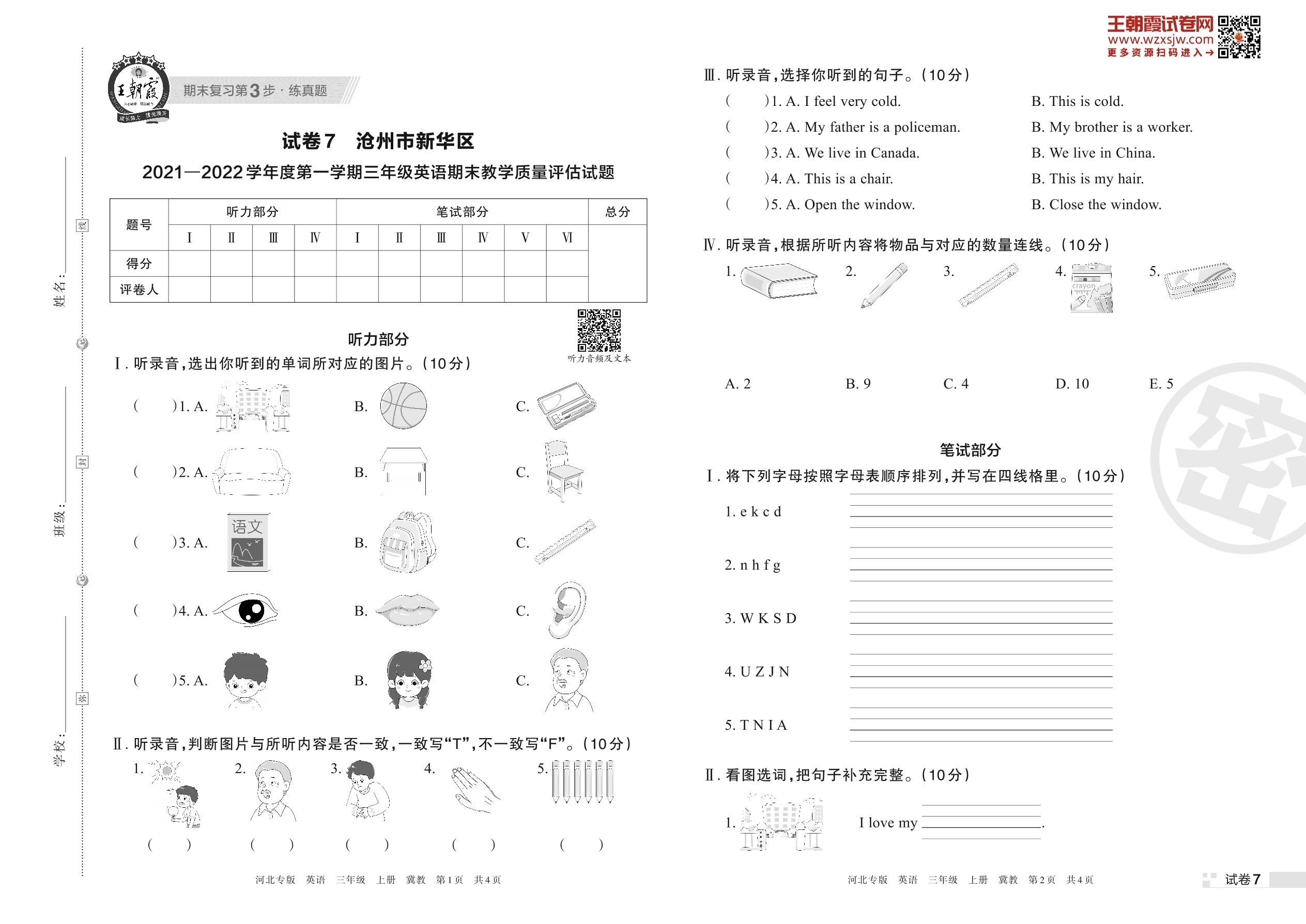 沧州市新华区2021—2022学年度第一学期三年级英语期末教学质量评估试题(冀教版)【7】