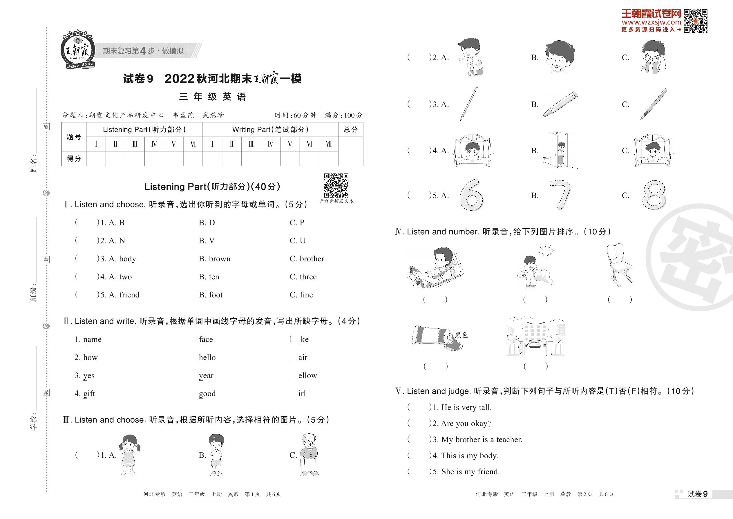 王朝霞期末模拟卷三年级上册英语(冀教版)_R221124131819463【9】