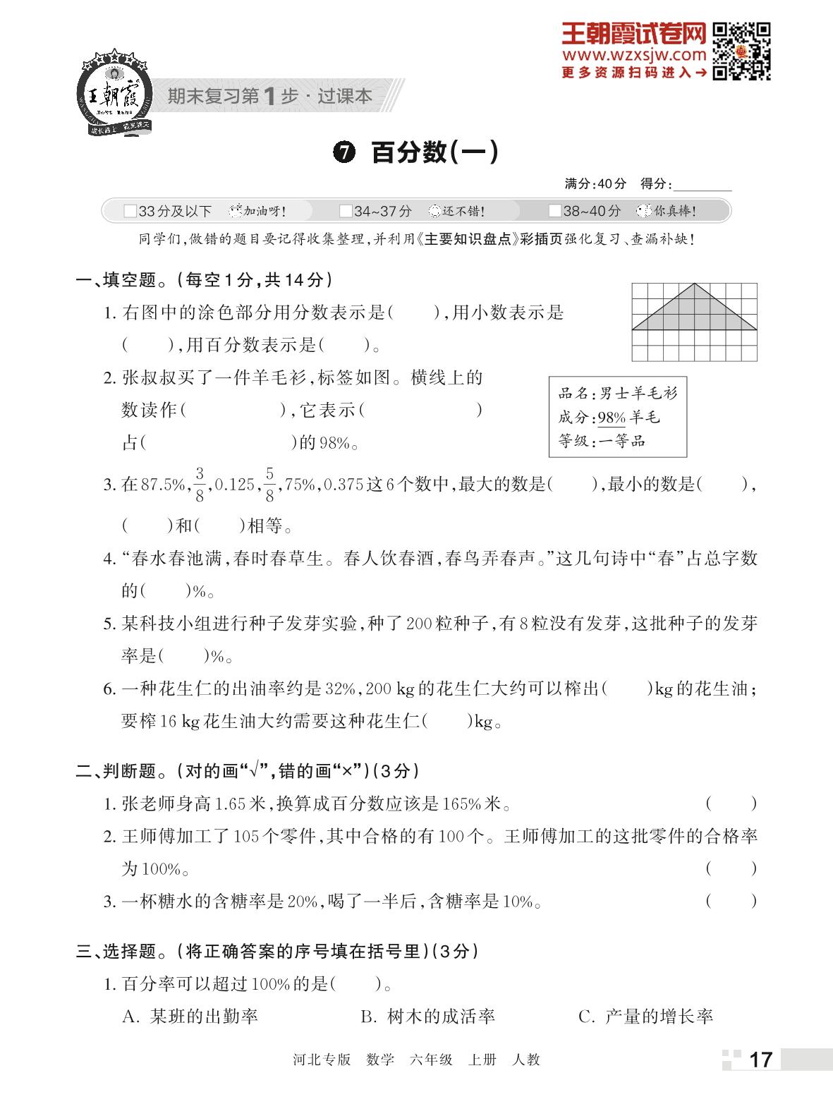 王朝霞期末过课本——7 百分数(一)六年级上册数学(人教版)_R221124135635964