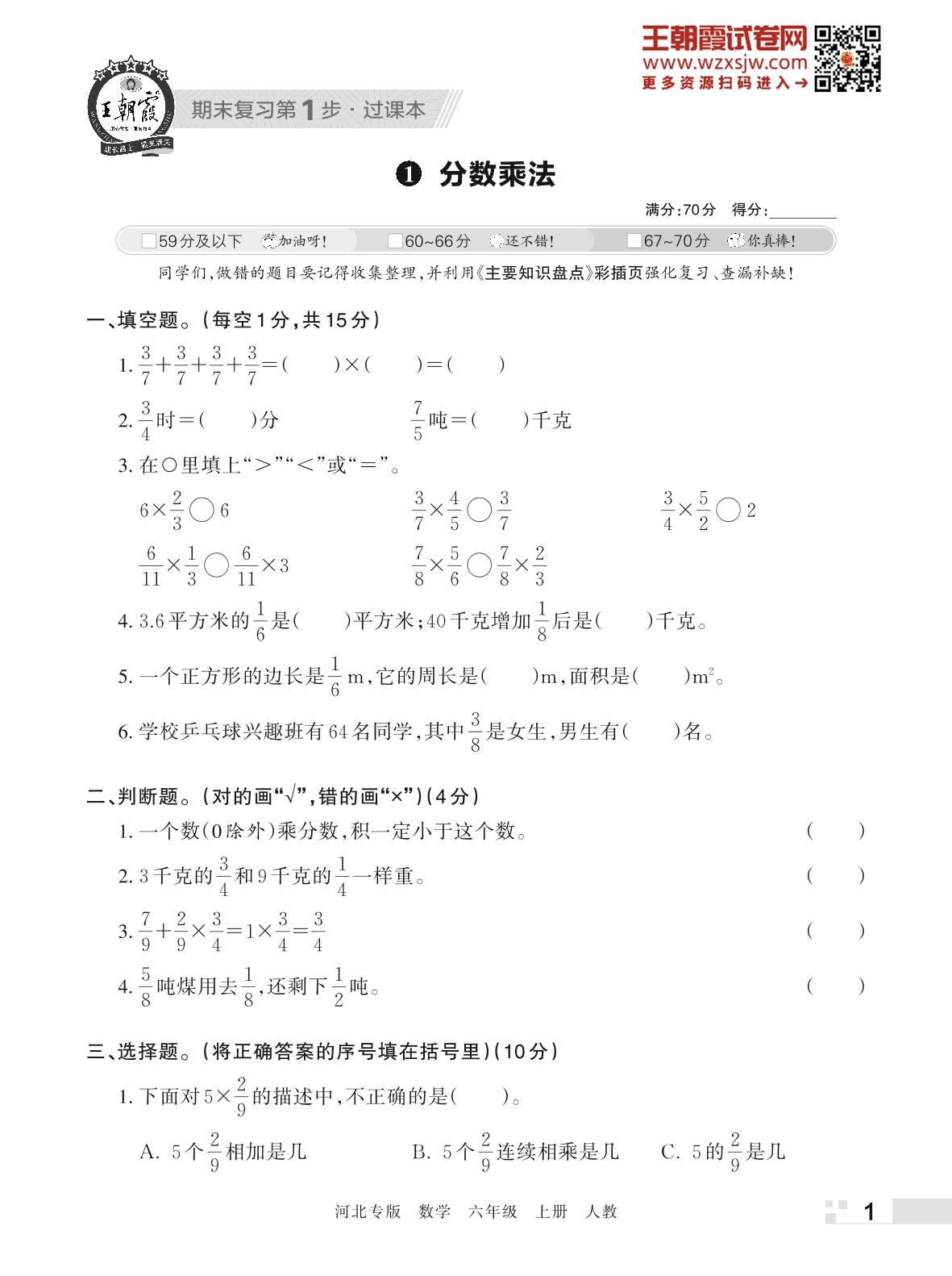 王朝霞期末过课本——1 分数乘法六年级上册数学(人教版)_R221124135636330
