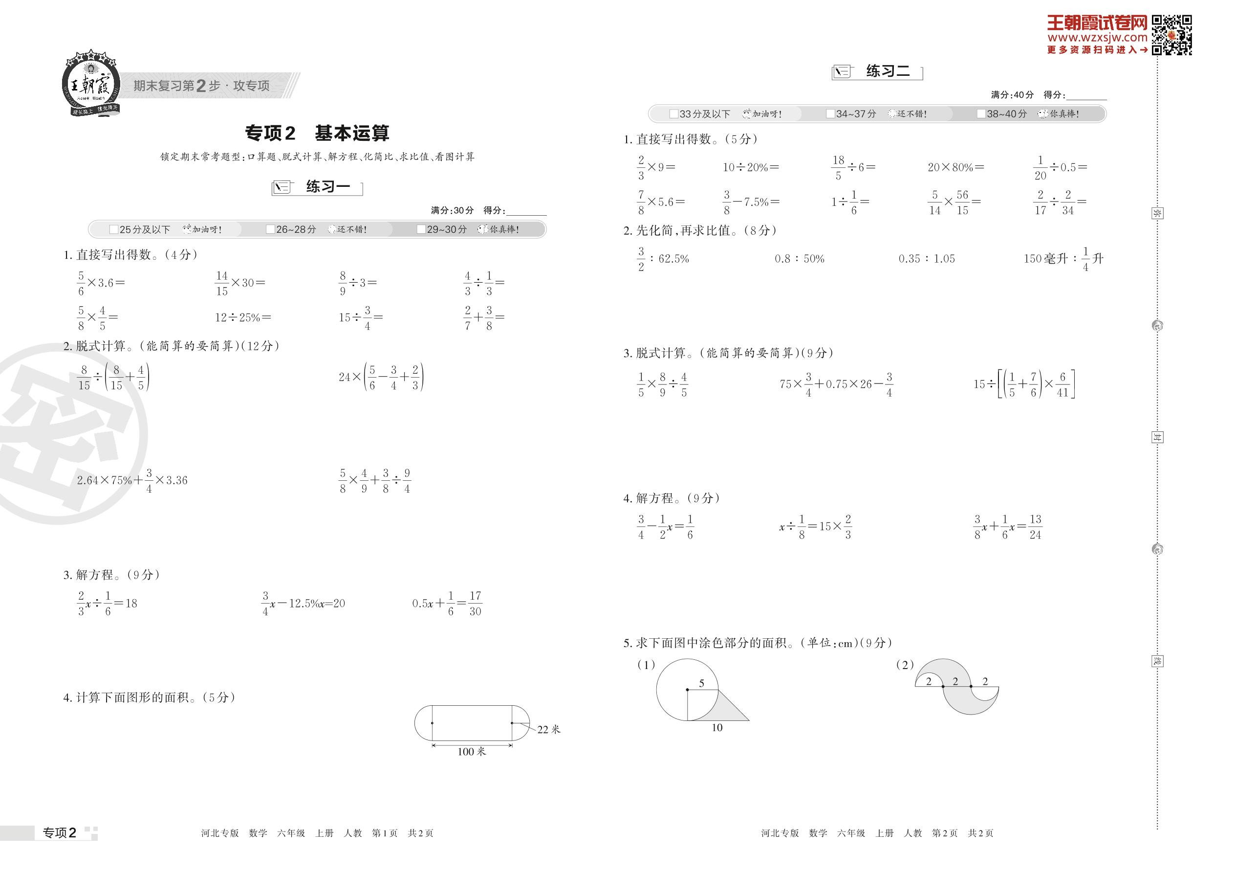 王朝霞期末专项卷——基本运算六年级上册数学(人教版)_R221124135636928【2】