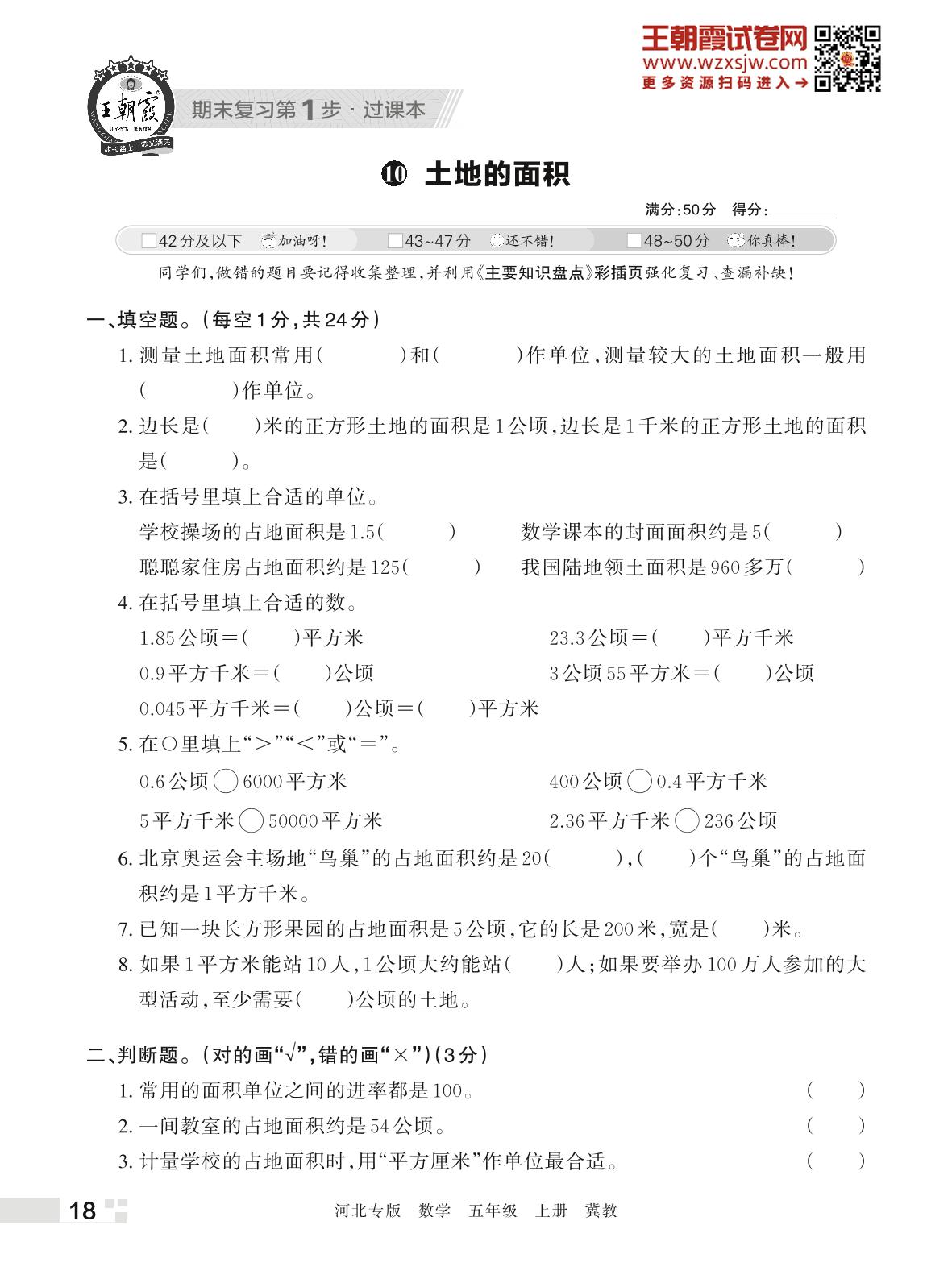 王朝霞期末过课本——10 土地的面积五年级上册数学(冀教版)