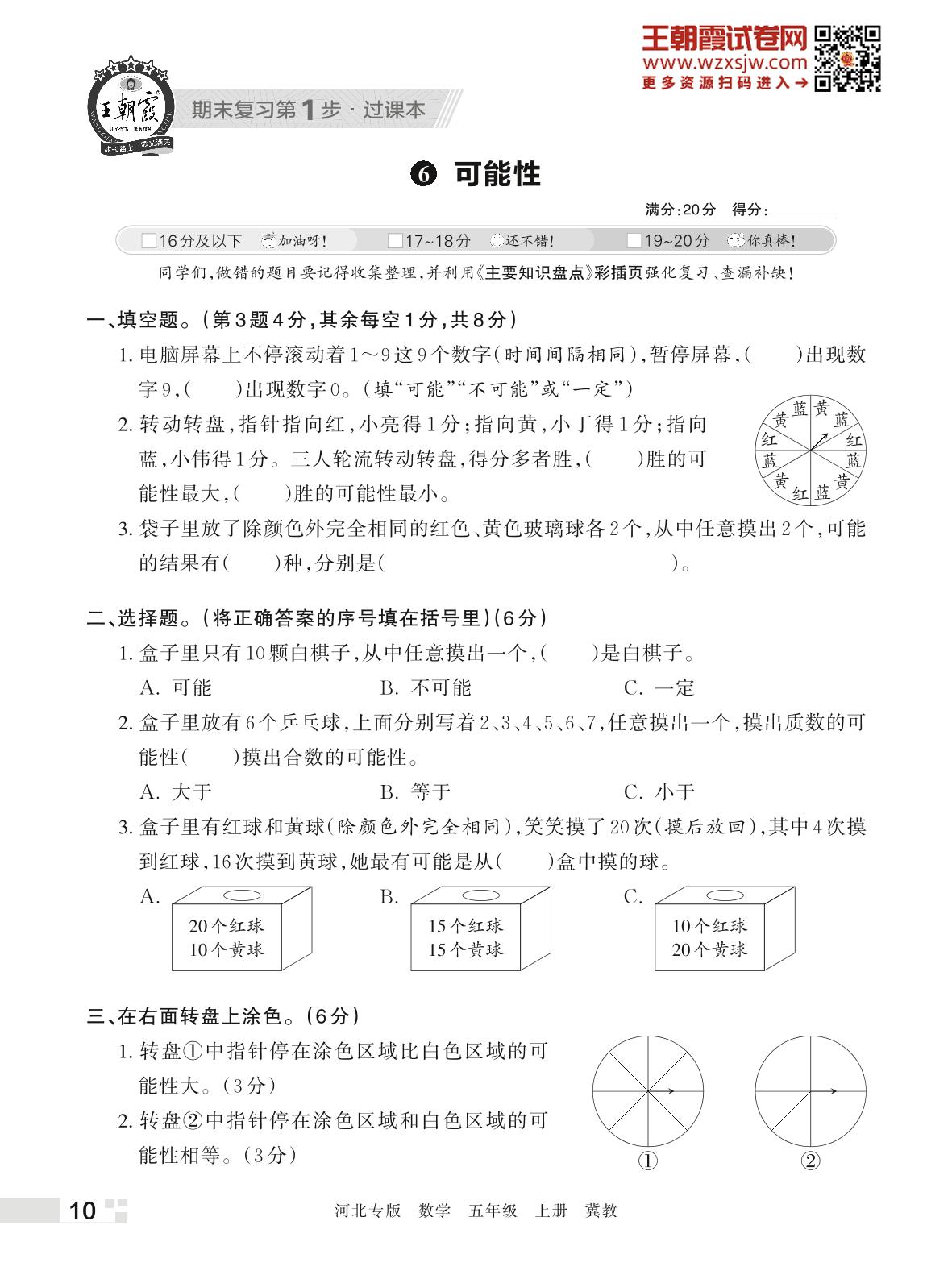 王朝霞期末过课本——6 可能性五年级上册数学(冀教版)