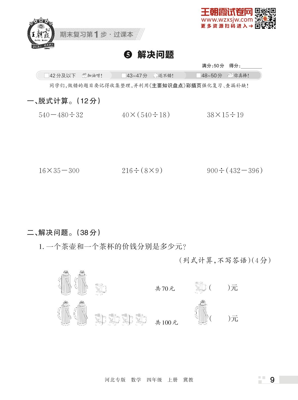 王朝霞期末过课本——5 解决问题四年级上册数学(冀教版)