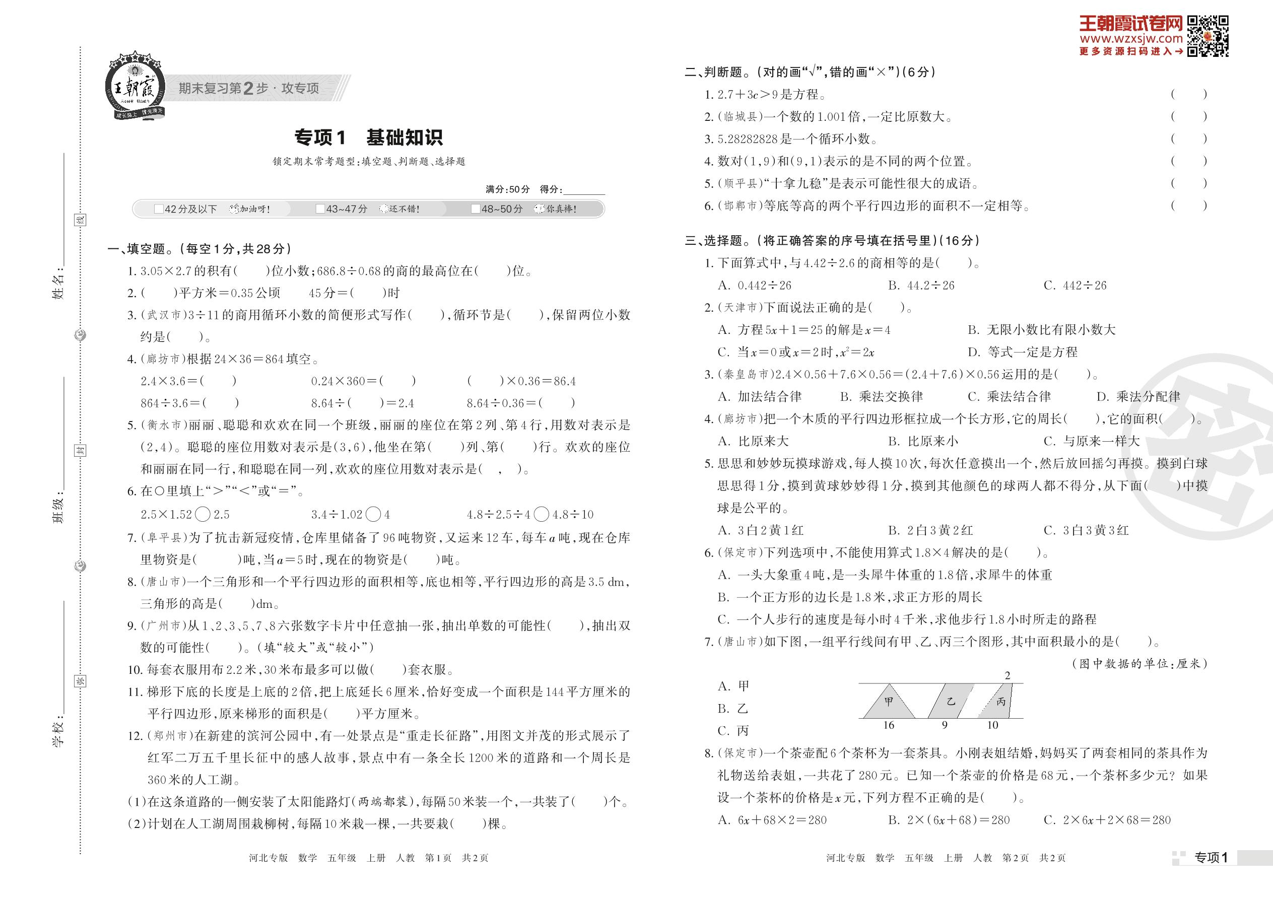 王朝霞期末专项卷——基础知识五年级上册数学(人教版)_R221124145318656【1】