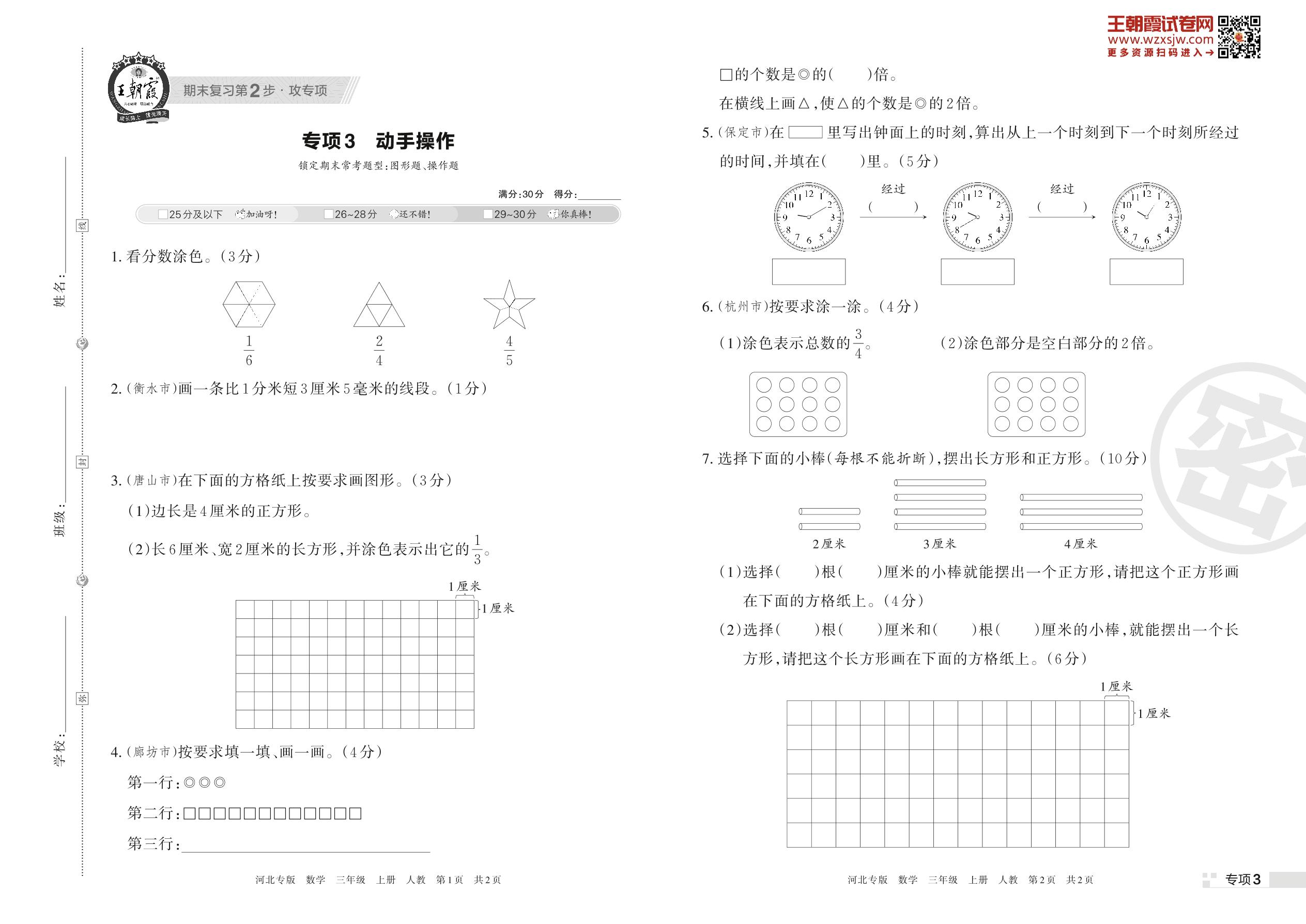 王朝霞期末专项卷——动手操作三年级上册数学(人教版)_R221124150257473【3】