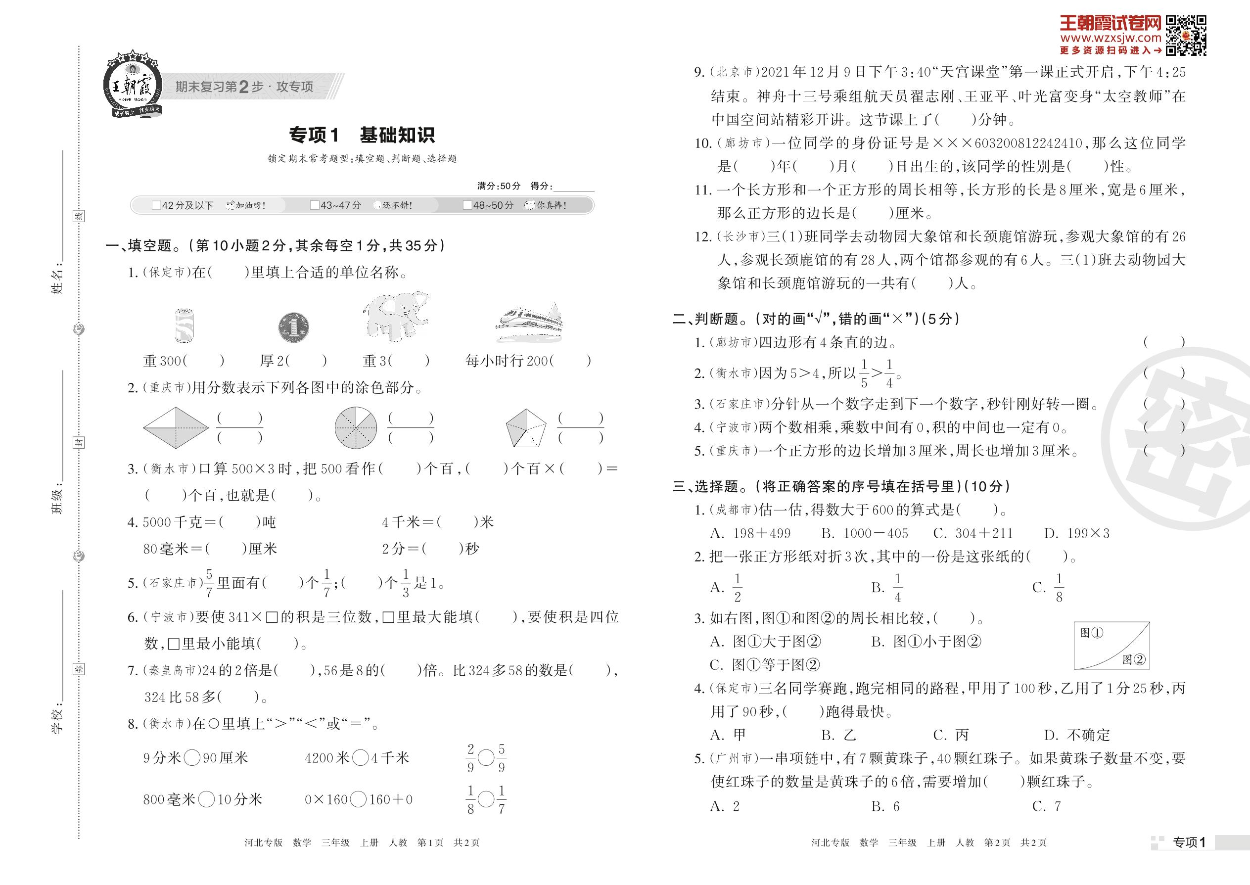 王朝霞期末专项卷——基础知识三年级上册数学(人教版)_R221124150257905【1】