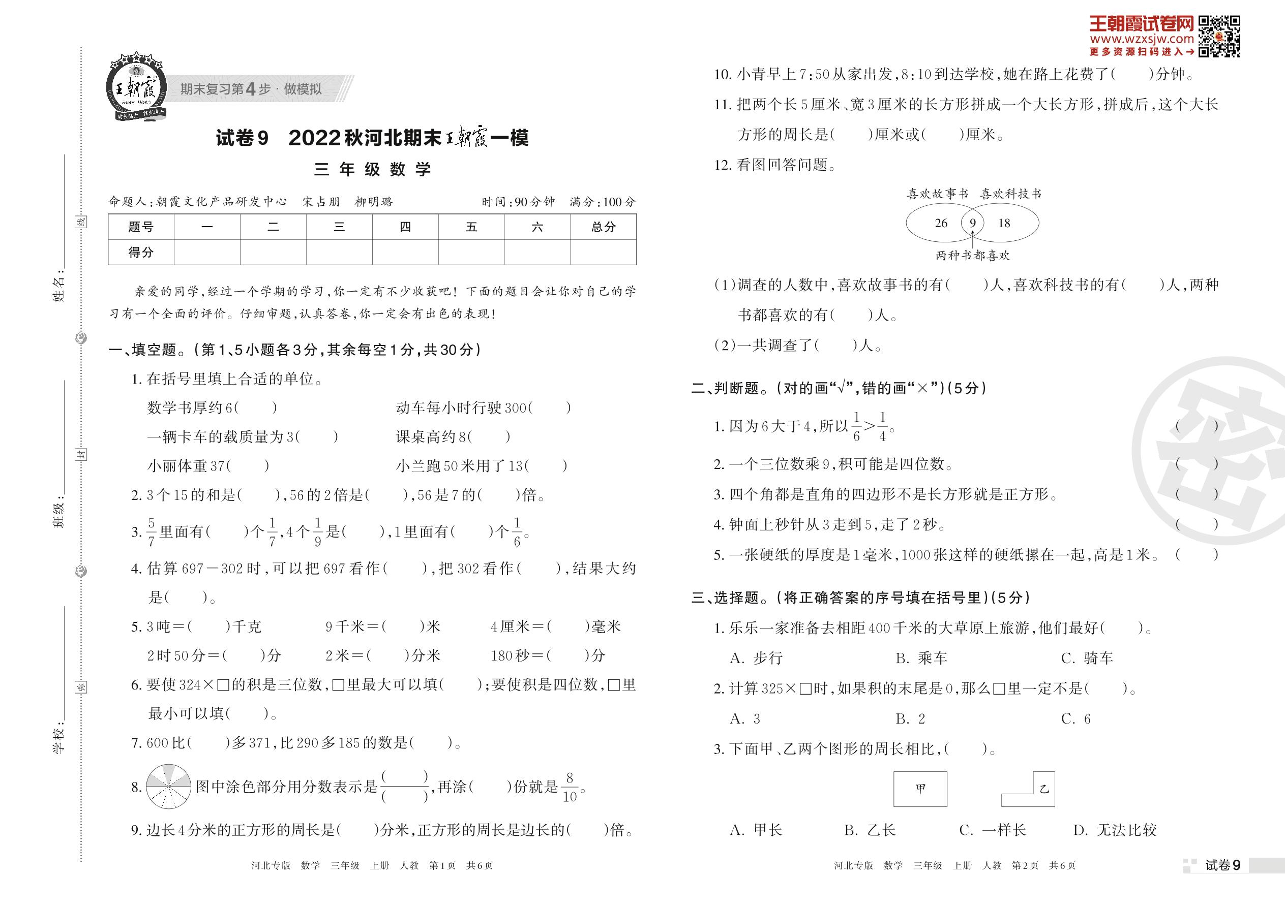 王朝霞期末模拟卷三年级上册数学(人教版)_R221124150259362【9】