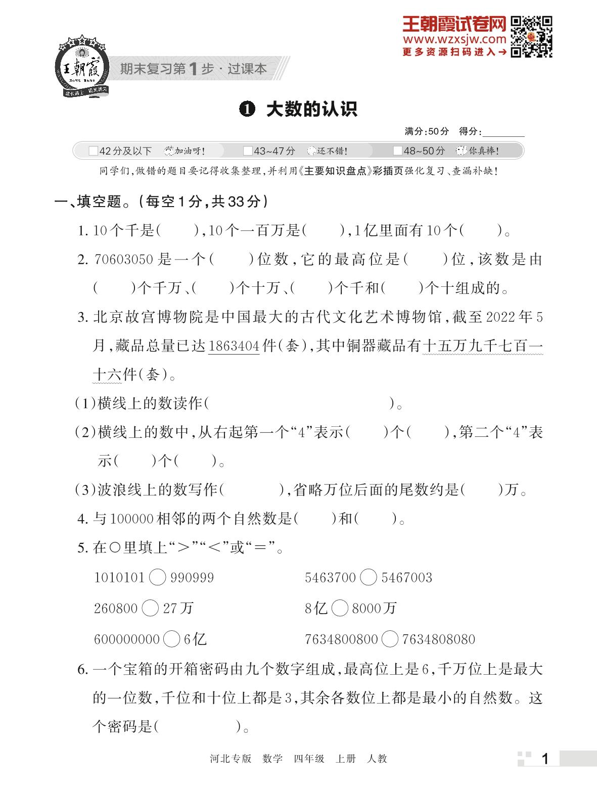 王朝霞期末过课本——1 大数的认识四年级上册数学(人教版)_R221124151419906