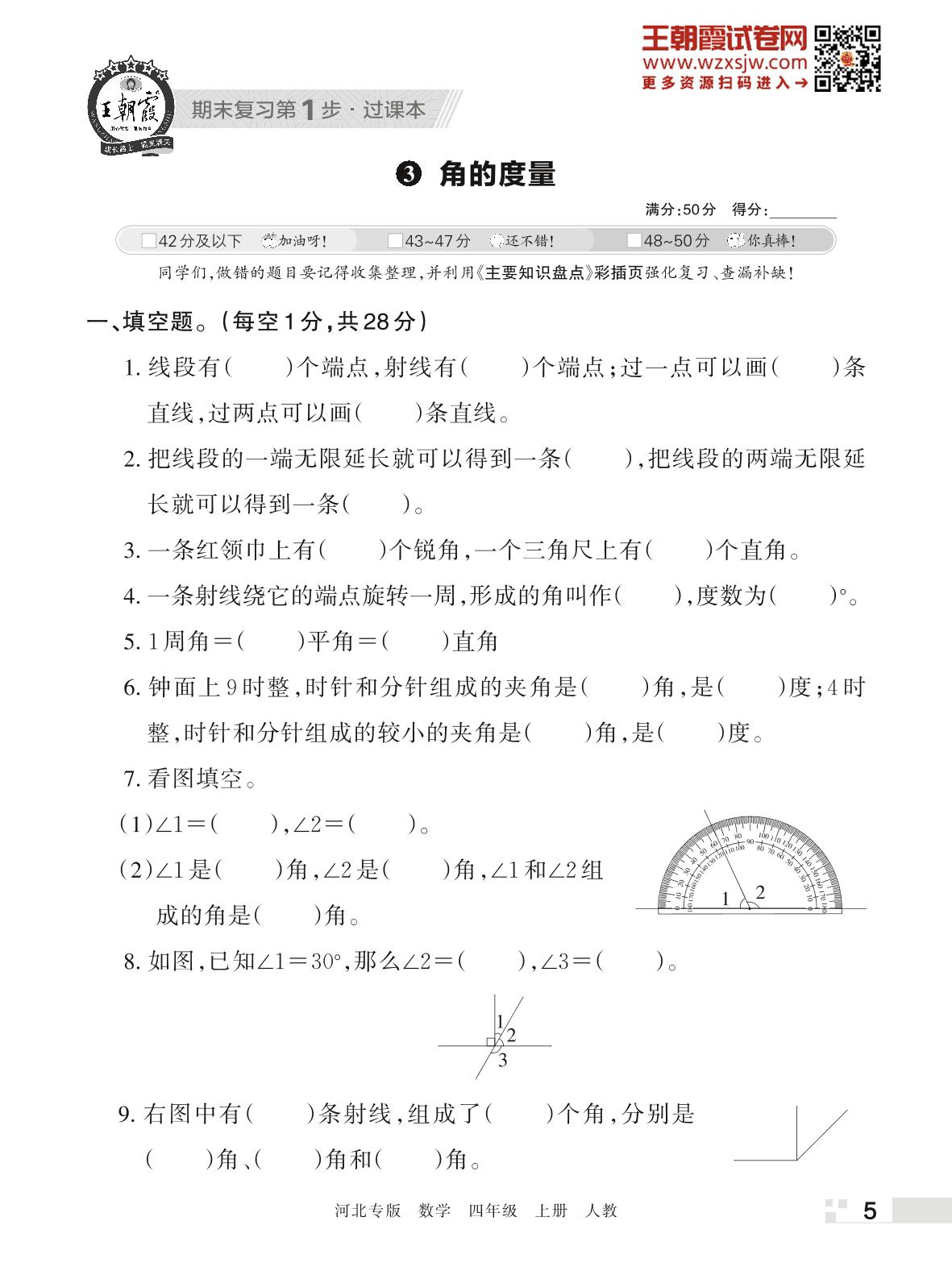 王朝霞期末过课本——3 角的度量四年级上册数学(人教版)_R221124151420504