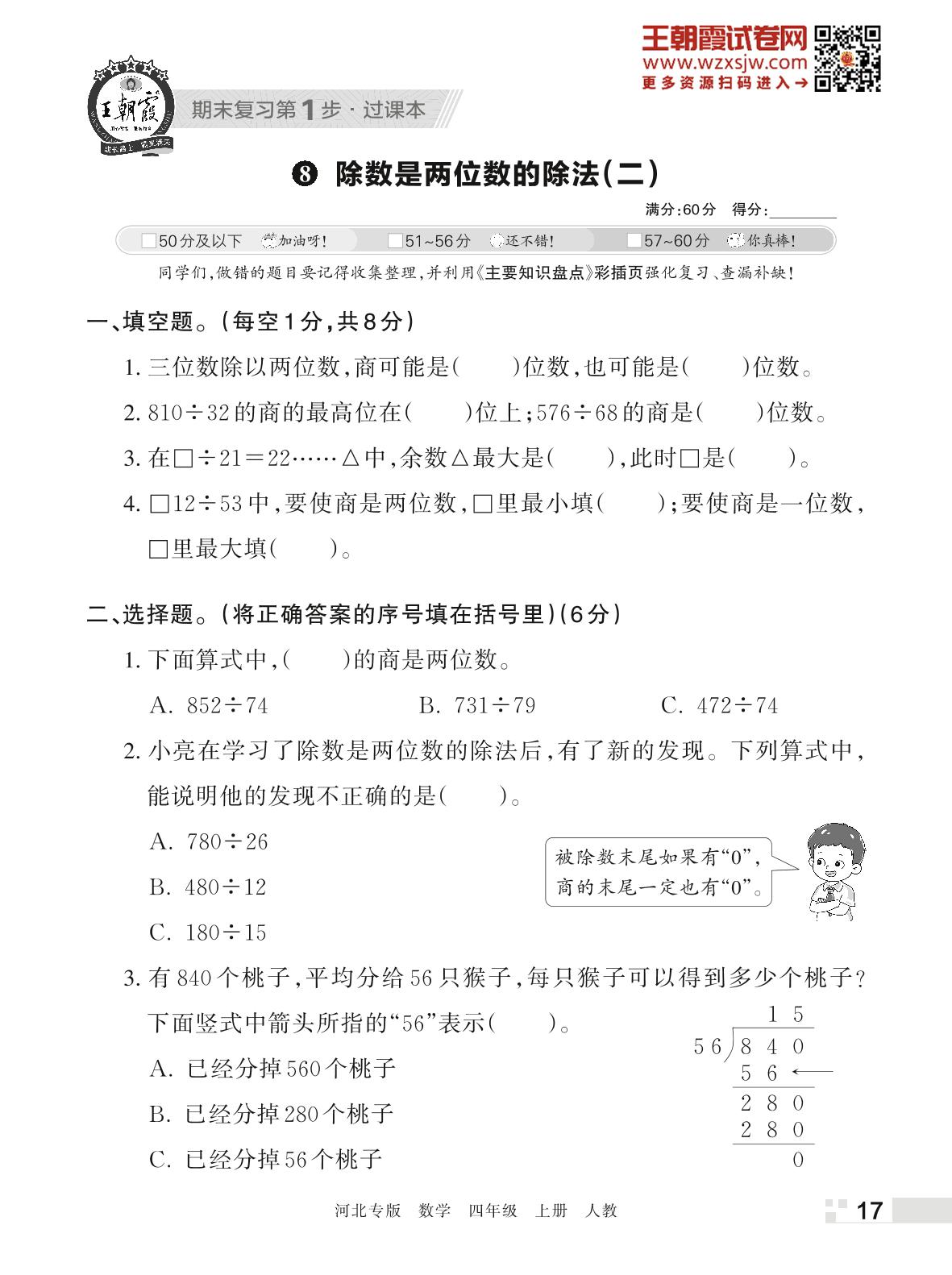 王朝霞期末过课本——8 除数是两位数的除法(二)四年级上册数学(人教版)_R221124151421068