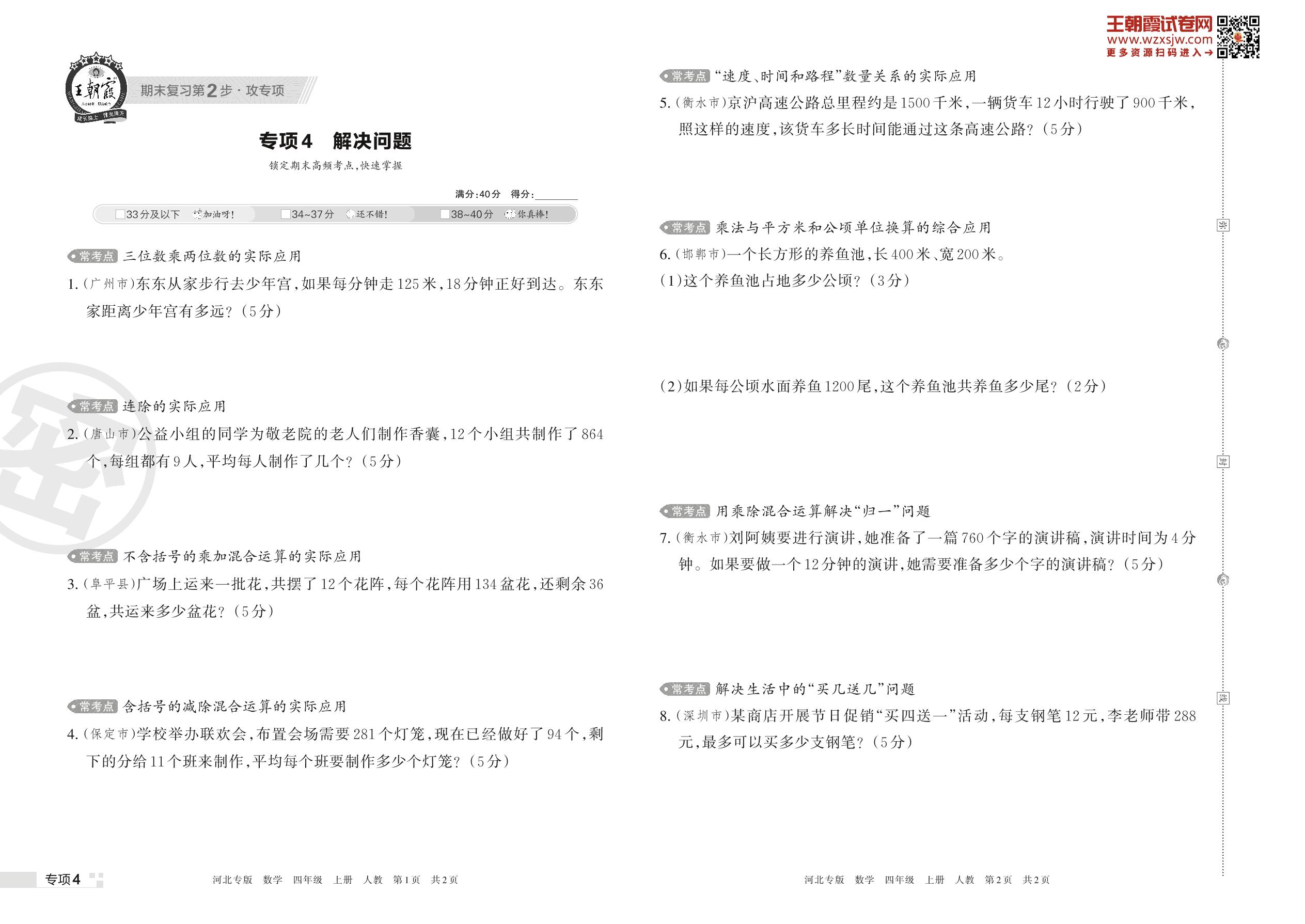 王朝霞期末专项卷——解决问题四年级上册数学(人教版)_R221124151421577【4】