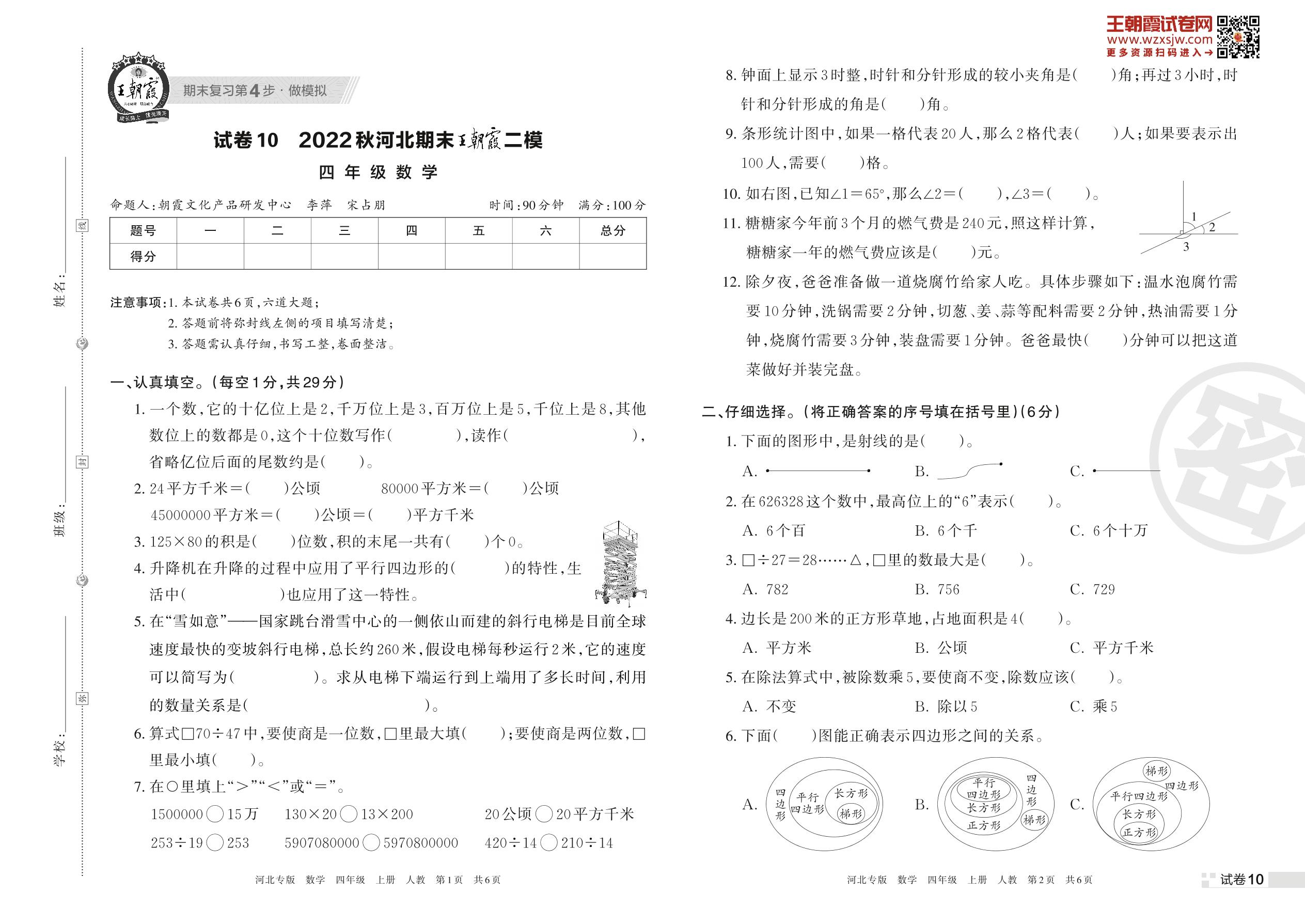 王朝霞期末模拟卷四年级上册数学(人教版)_R221124151423530【10】