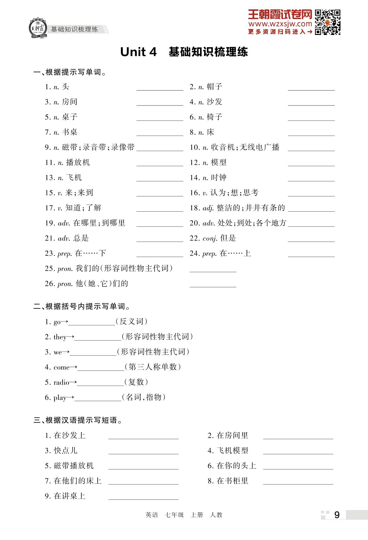 王朝霞期末过课本——Unit 4 基础知识梳理练七年级上册英语(人教版)_R221124152008428