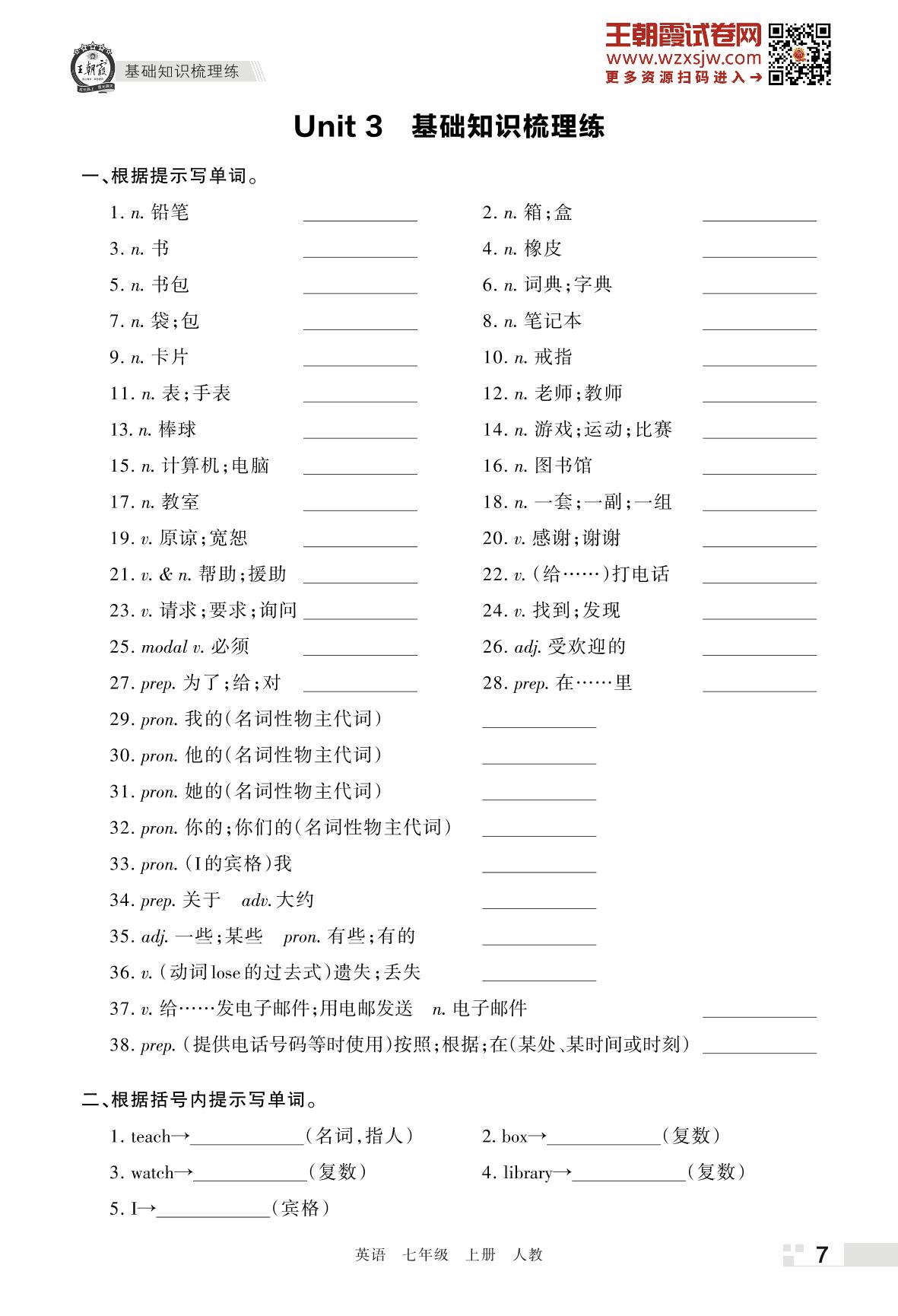王朝霞期末过课本——Unit 3 基础知识梳理练七年级上册英语(人教版)_R221124152009027