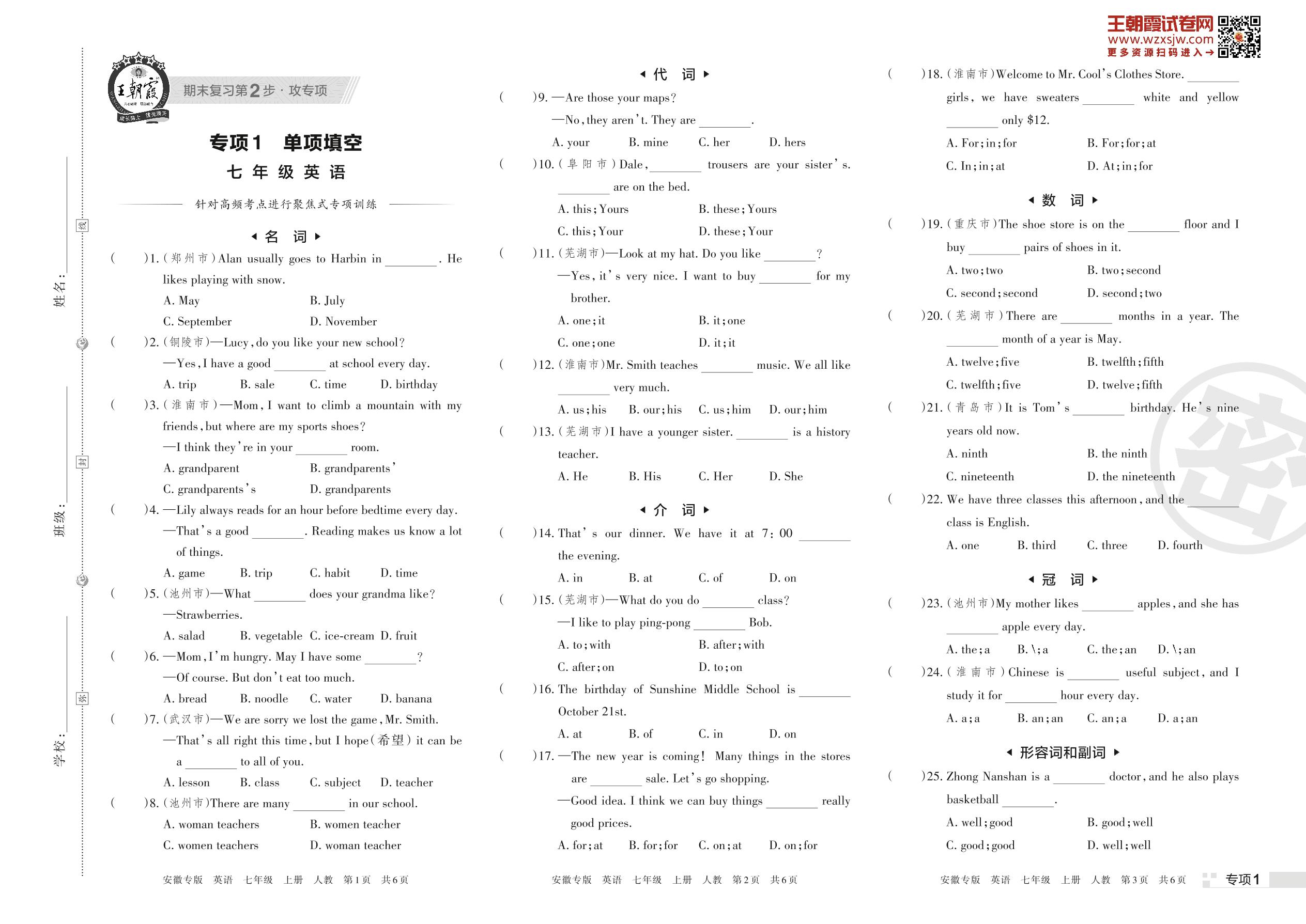 王朝霞期末专项卷——单项填空七年级上册英语(人教版)【1】