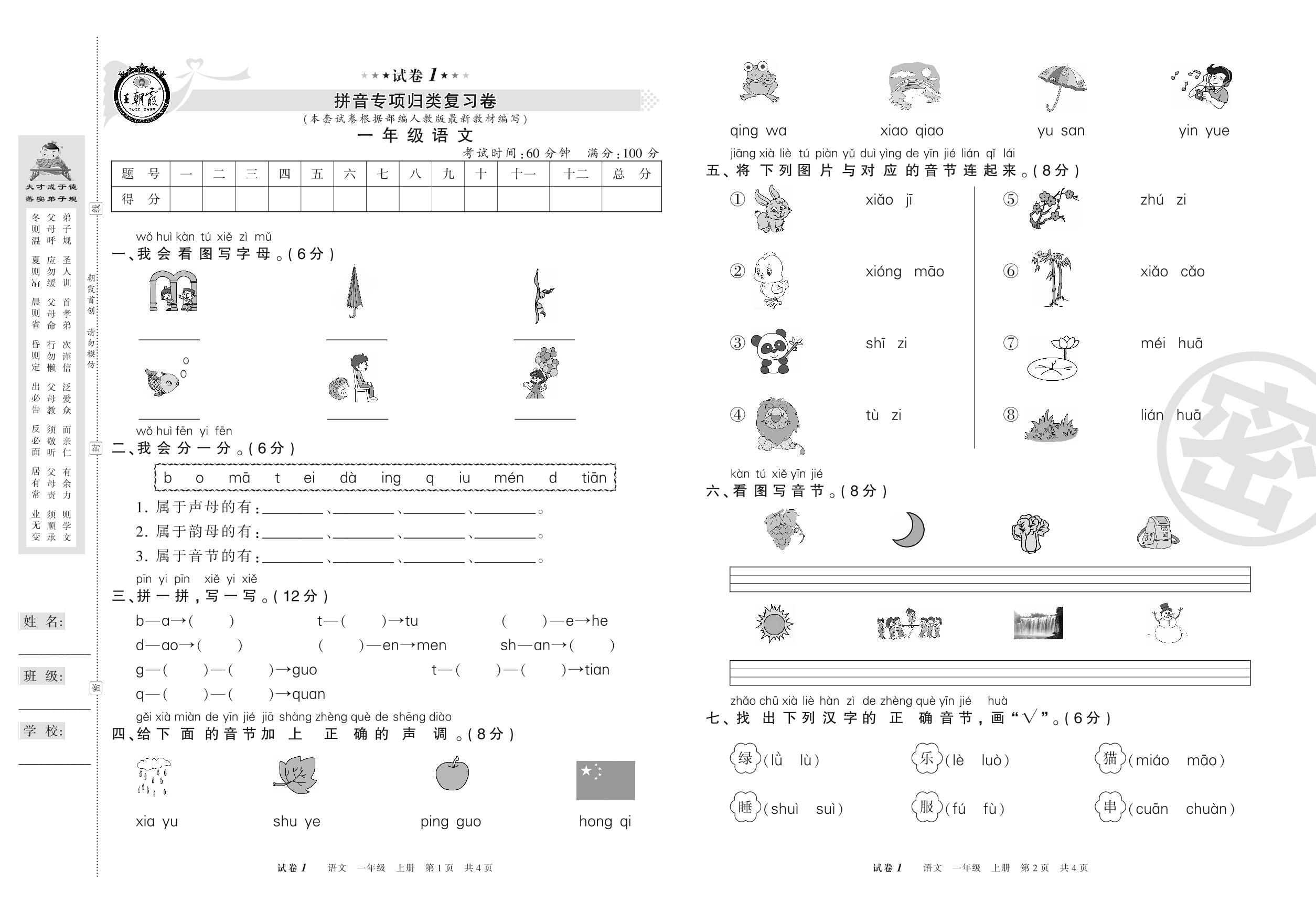 王朝霞期末专项卷一年级上册语文(人教版)_R210731184934【1】