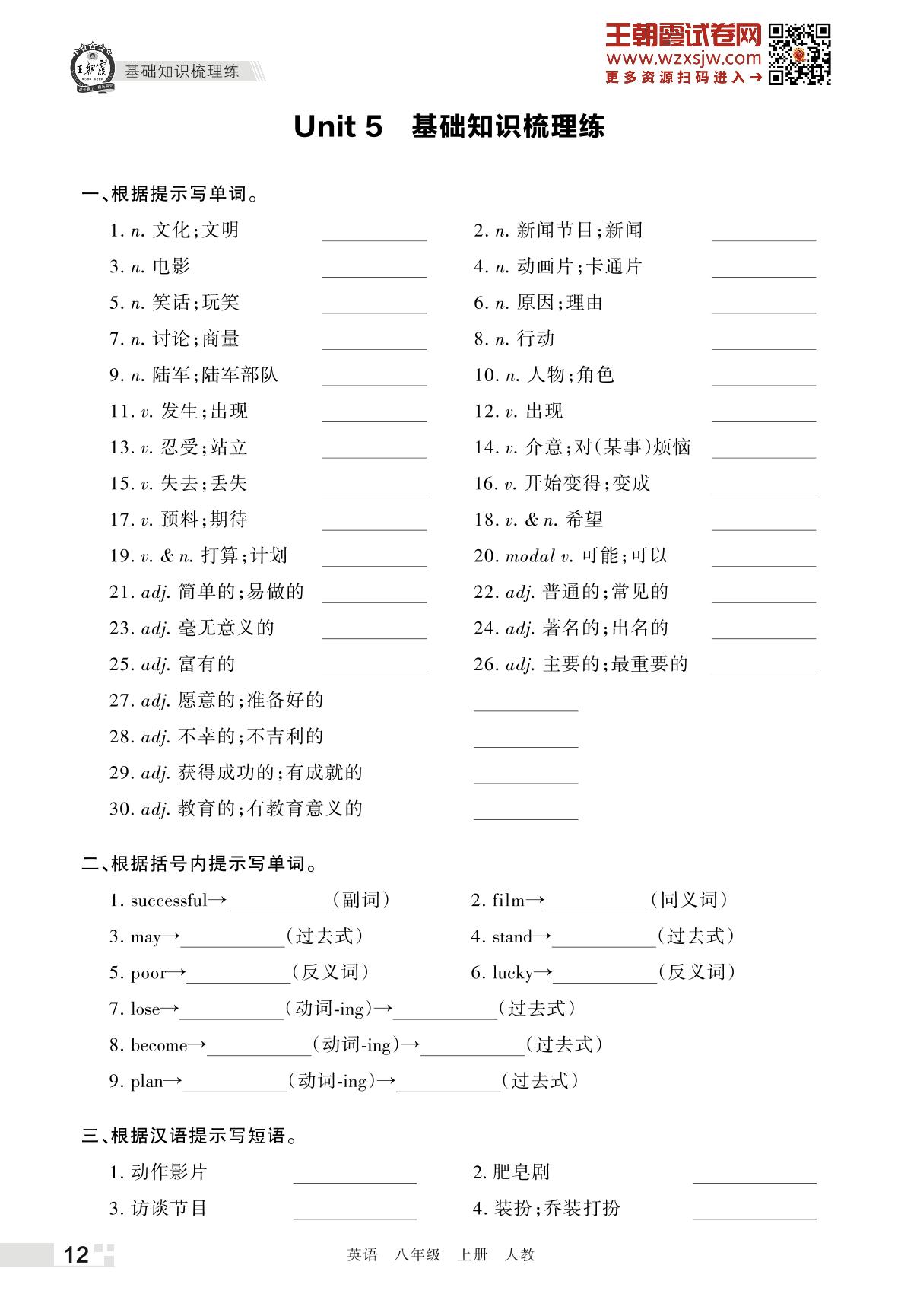 王朝霞期末过课本——Unit 5 基础知识梳理练八年级上册英语(人教版)_R221124152827361