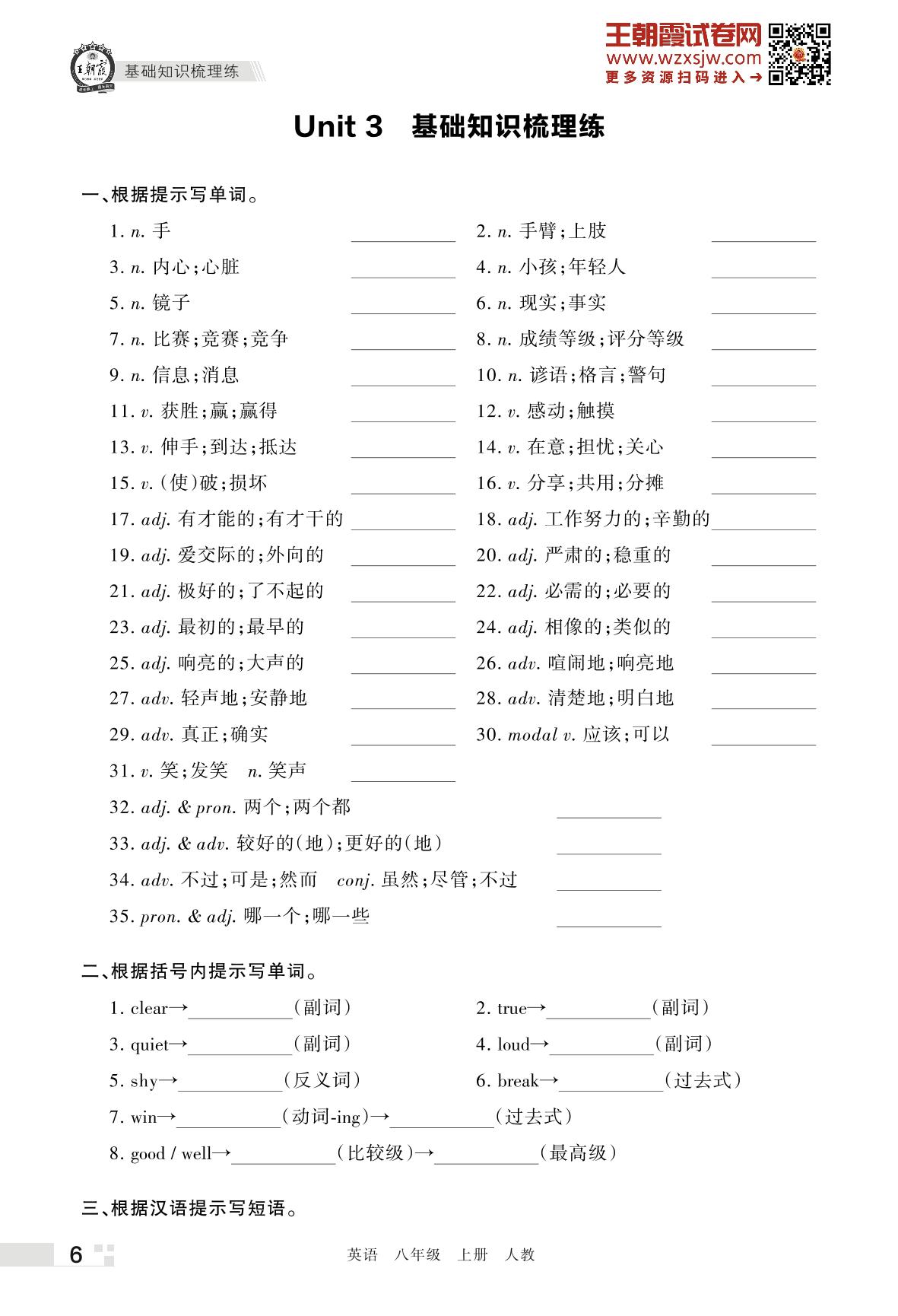 王朝霞期末过课本——Unit 3 基础知识梳理练八年级上册英语(人教版)_R221124152827114