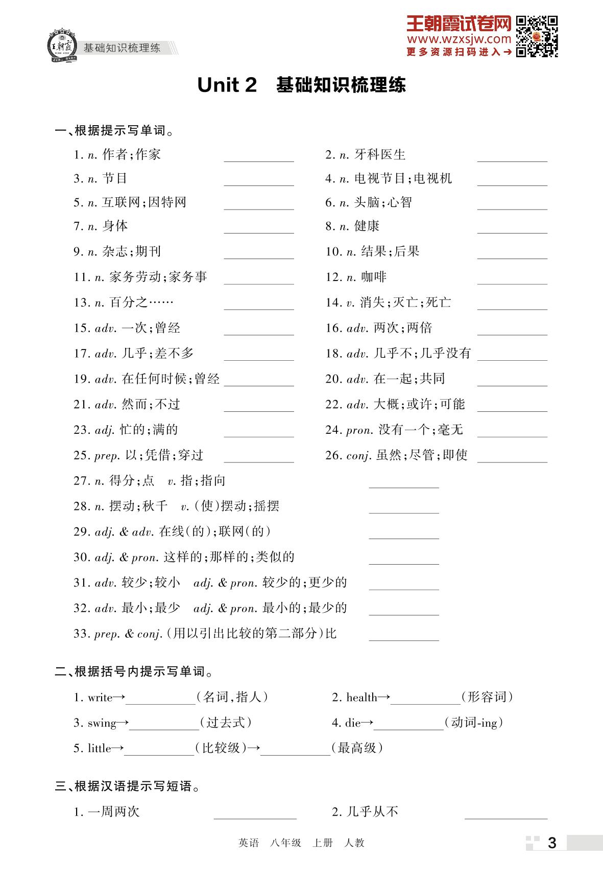 王朝霞期末过课本——Unit 2 基础知识梳理练八年级上册英语(人教版)_R221124152827617