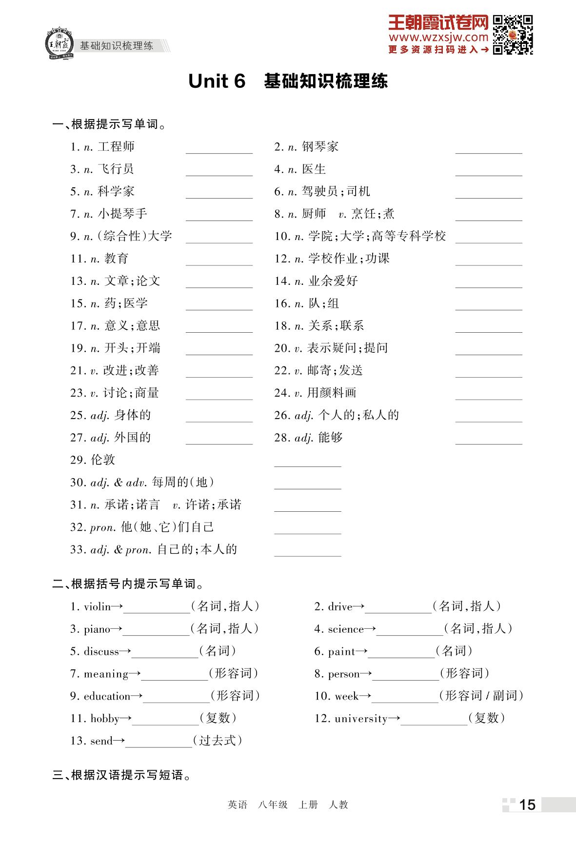 王朝霞期末过课本——Unit 6 基础知识梳理练八年级上册英语(人教版)_R221124152828478