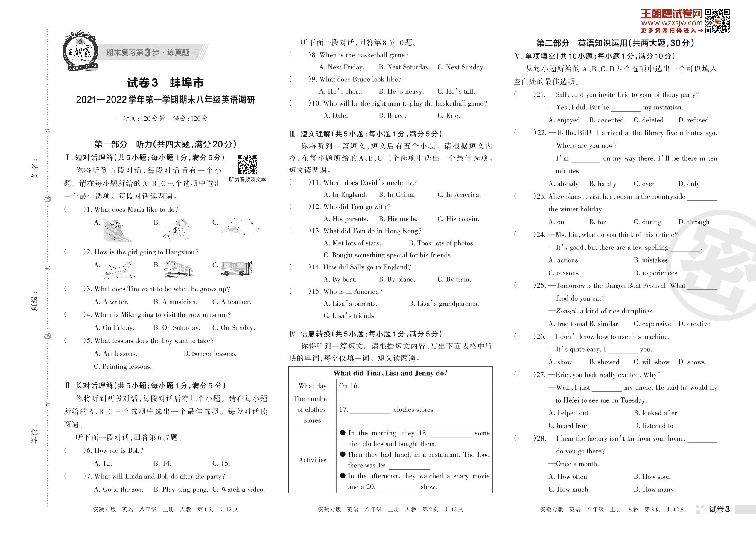 蚌埠市2021—2022学年第一学期期末八年级英语调研(人教版)【3】