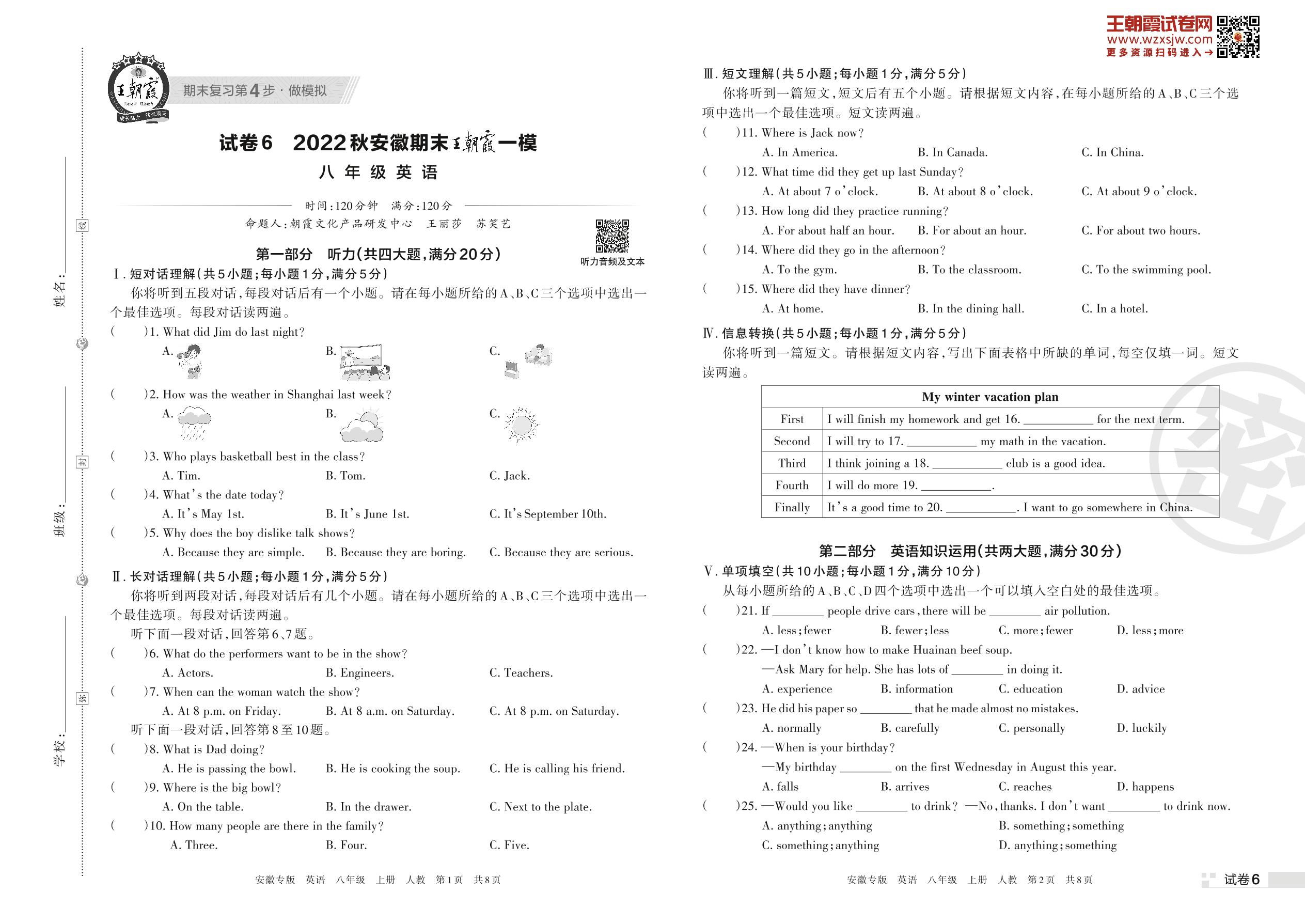 王朝霞期末模拟卷八年级上册英语(人教版)_R221124152829928【6】