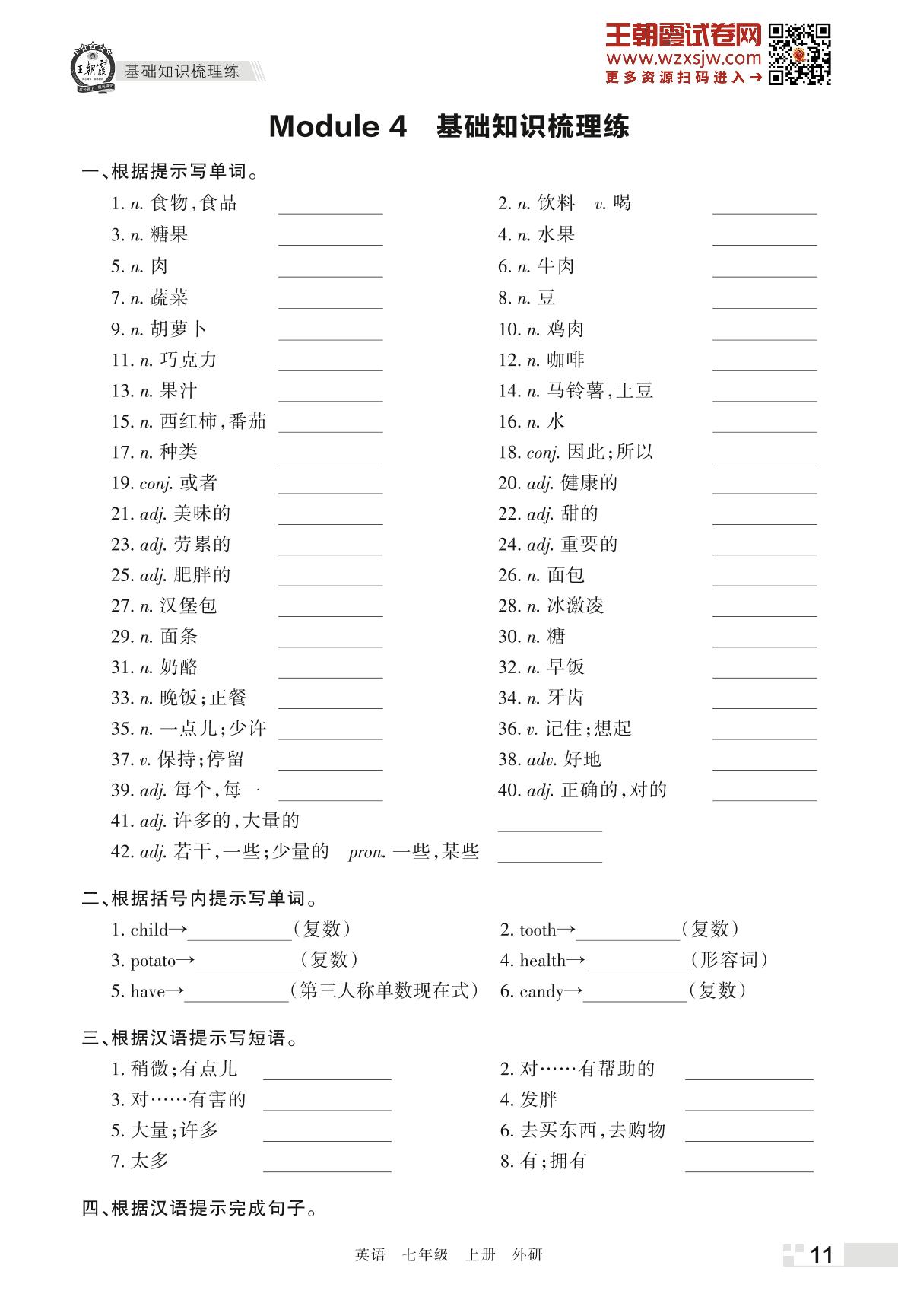 王朝霞期末过课本——Module 6 基础知识梳理练七年级上册英语(外研版)