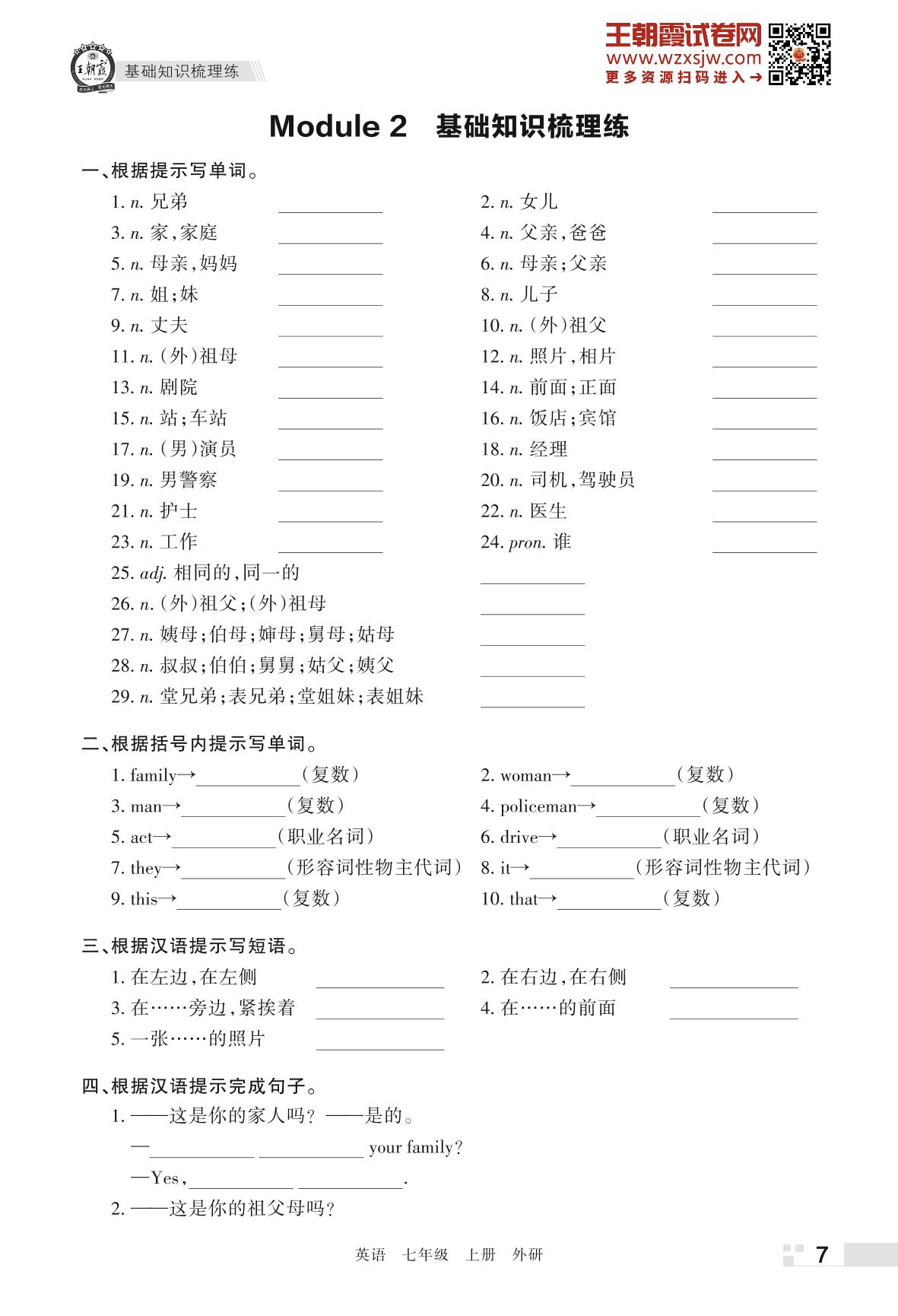 王朝霞期末过课本——Module 4 基础知识梳理练七年级上册英语(外研版)