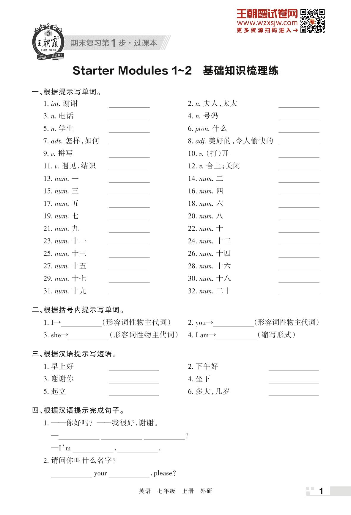 王朝霞期末过课本——Module 1 基础知识梳理练七年级上册英语(外研版)