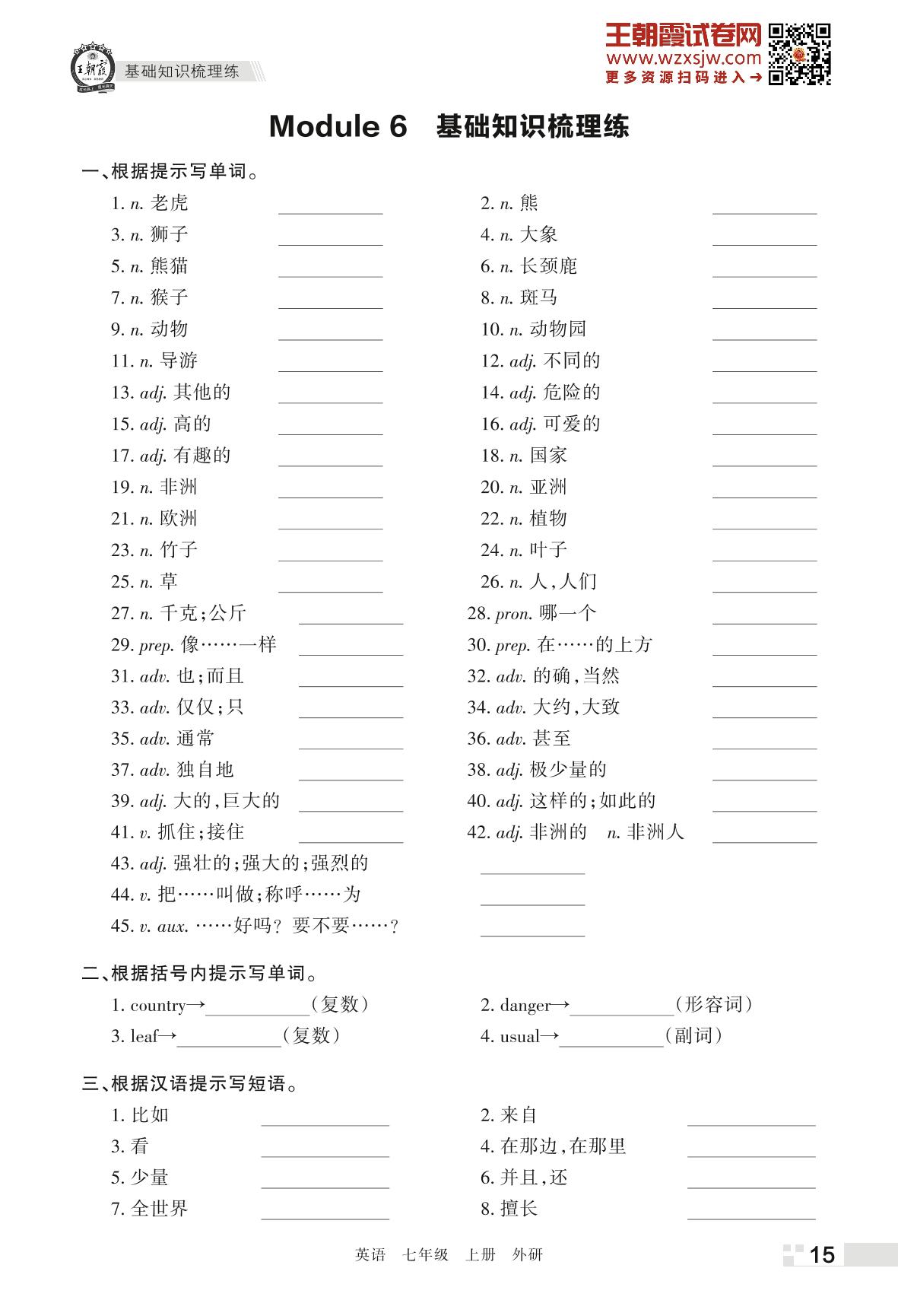 王朝霞期末过课本——Module 8 基础知识梳理练七年级上册英语(外研版)