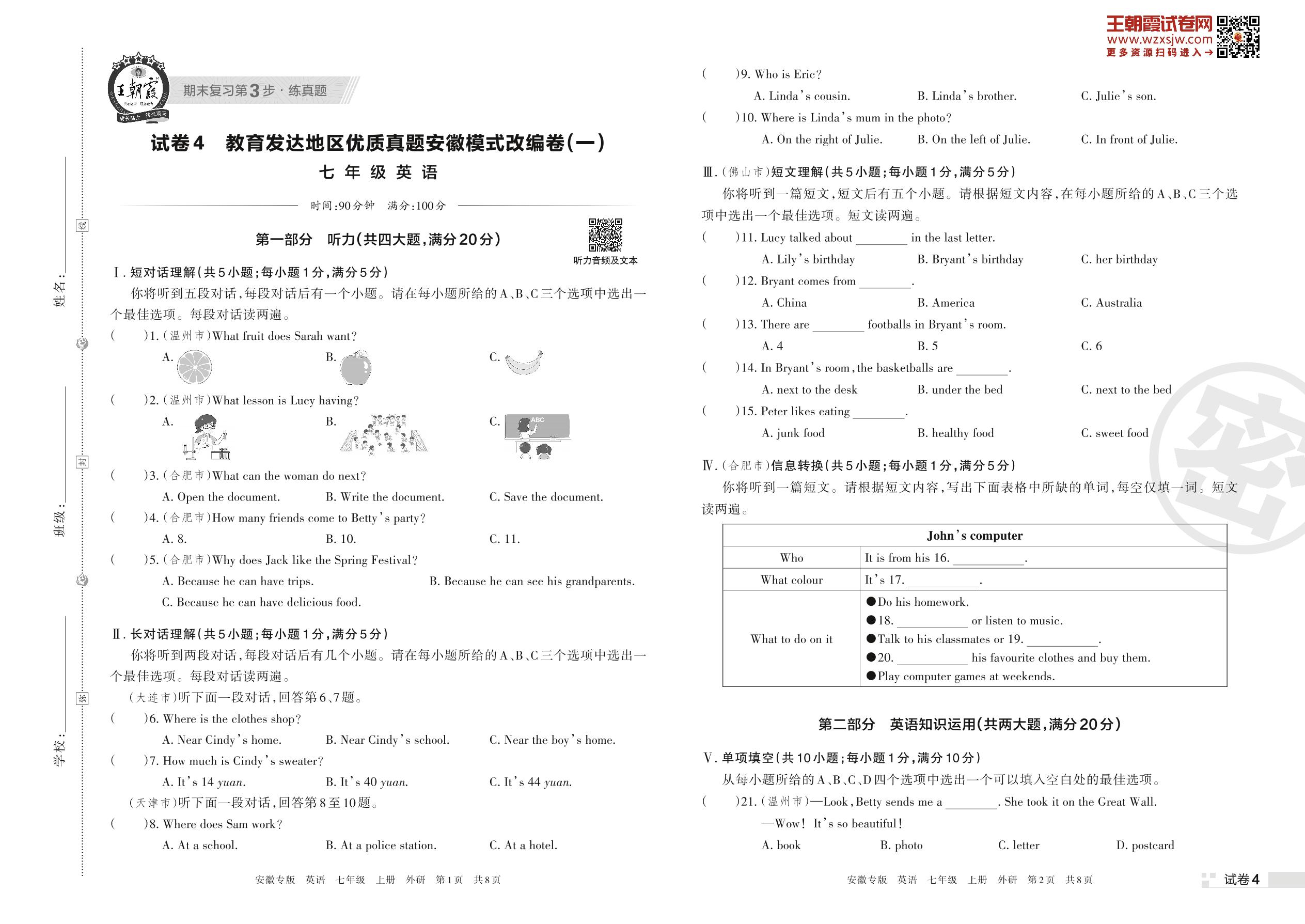 教育发达地区优质真题安徽模式改编卷(一)七年级英语(外研版)【4】