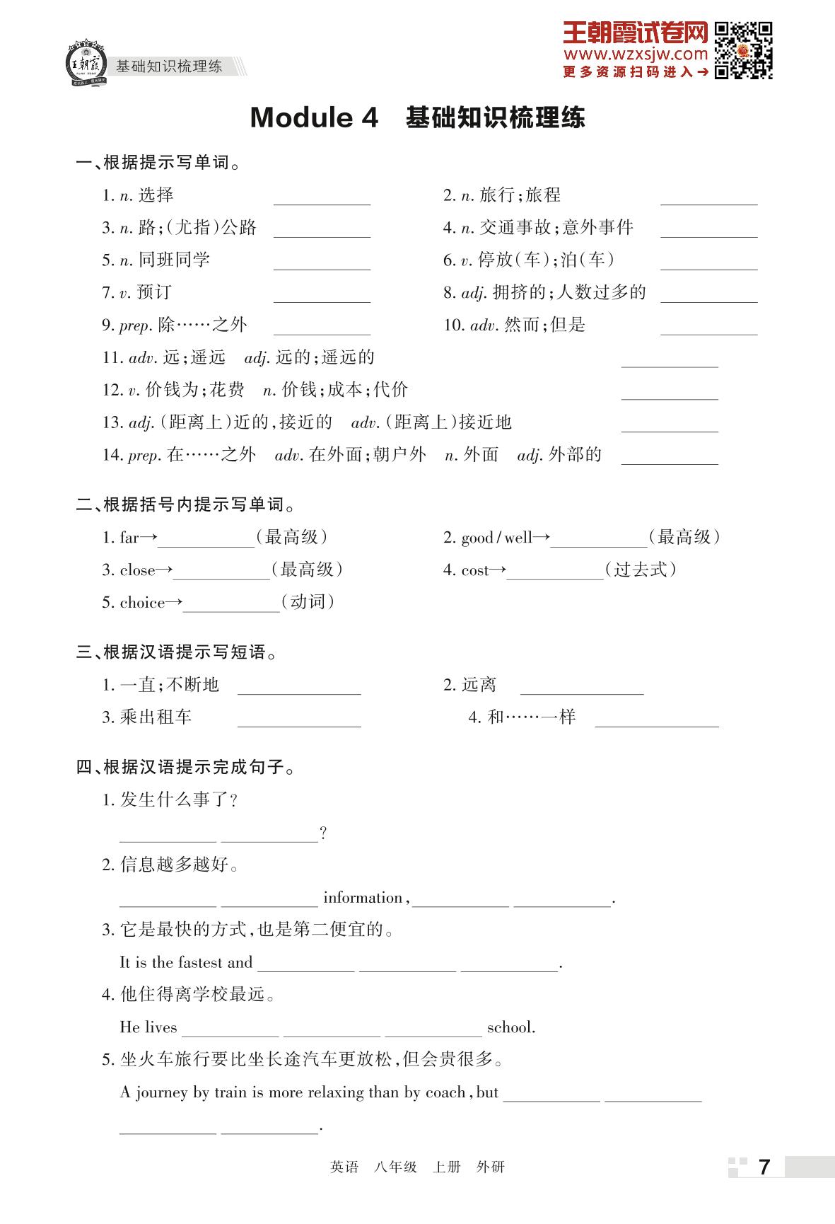 王朝霞期末过课本——Module 4 基础知识梳理练八年级上册英语(外研版)