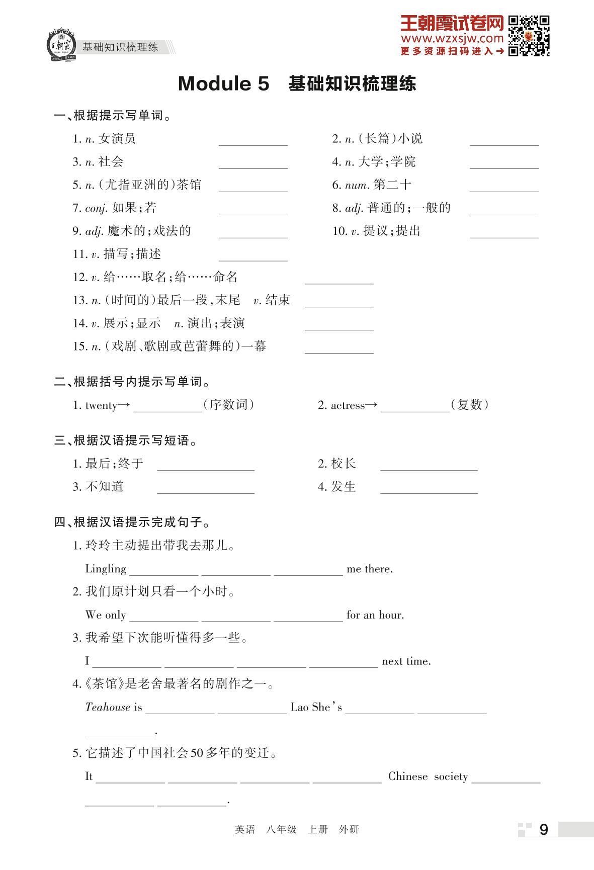 王朝霞期末过课本——Module 5 基础知识梳理练八年级上册英语(外研版)