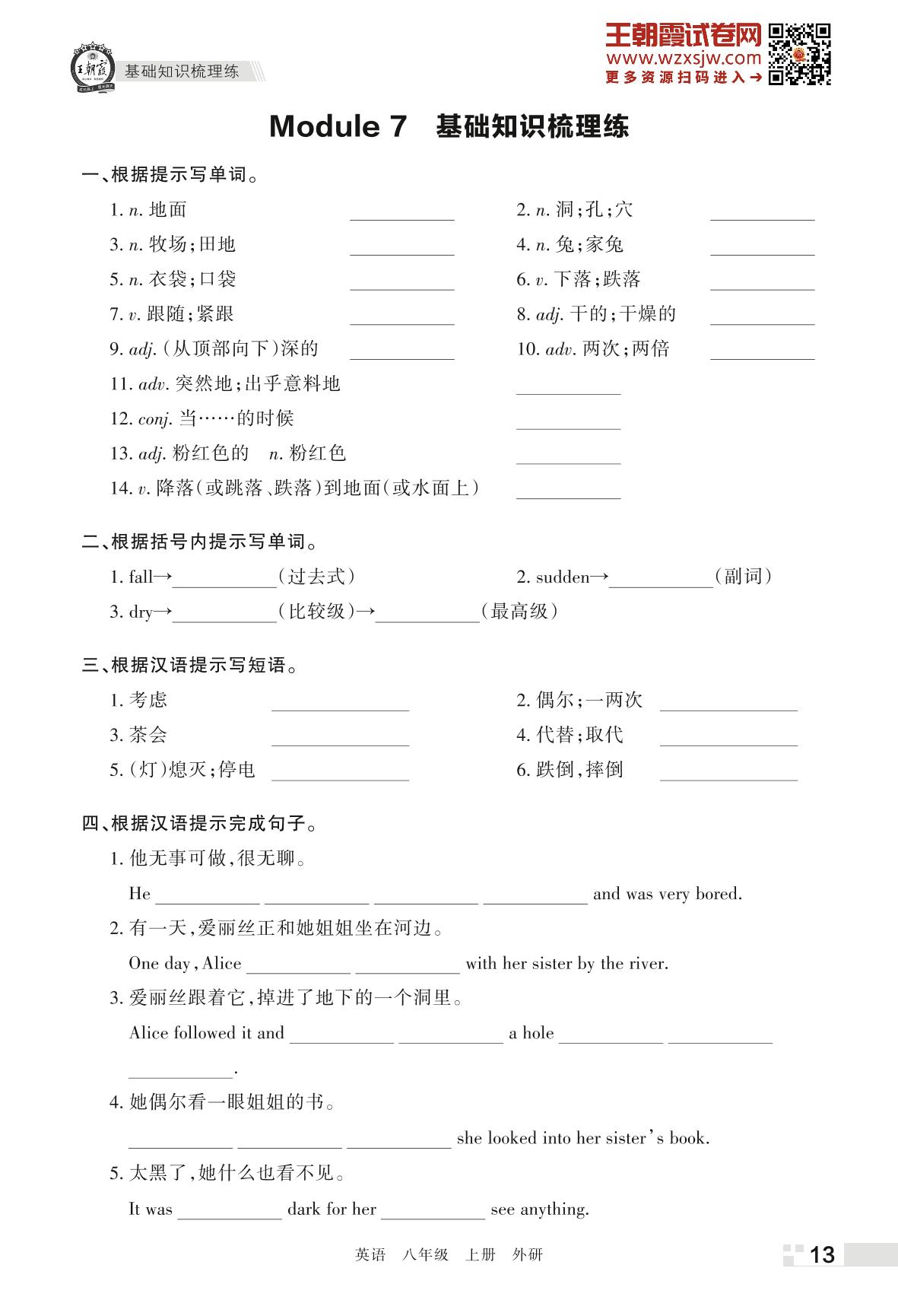 王朝霞期末过课本——Module 7 基础知识梳理练八年级上册英语(外研版)