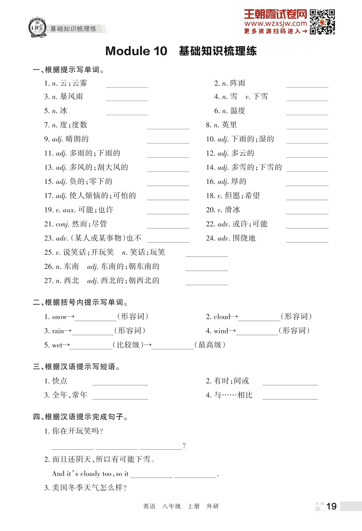 王朝霞期末过课本——Module 10 基础知识梳理练八年级上册英语(外研版)