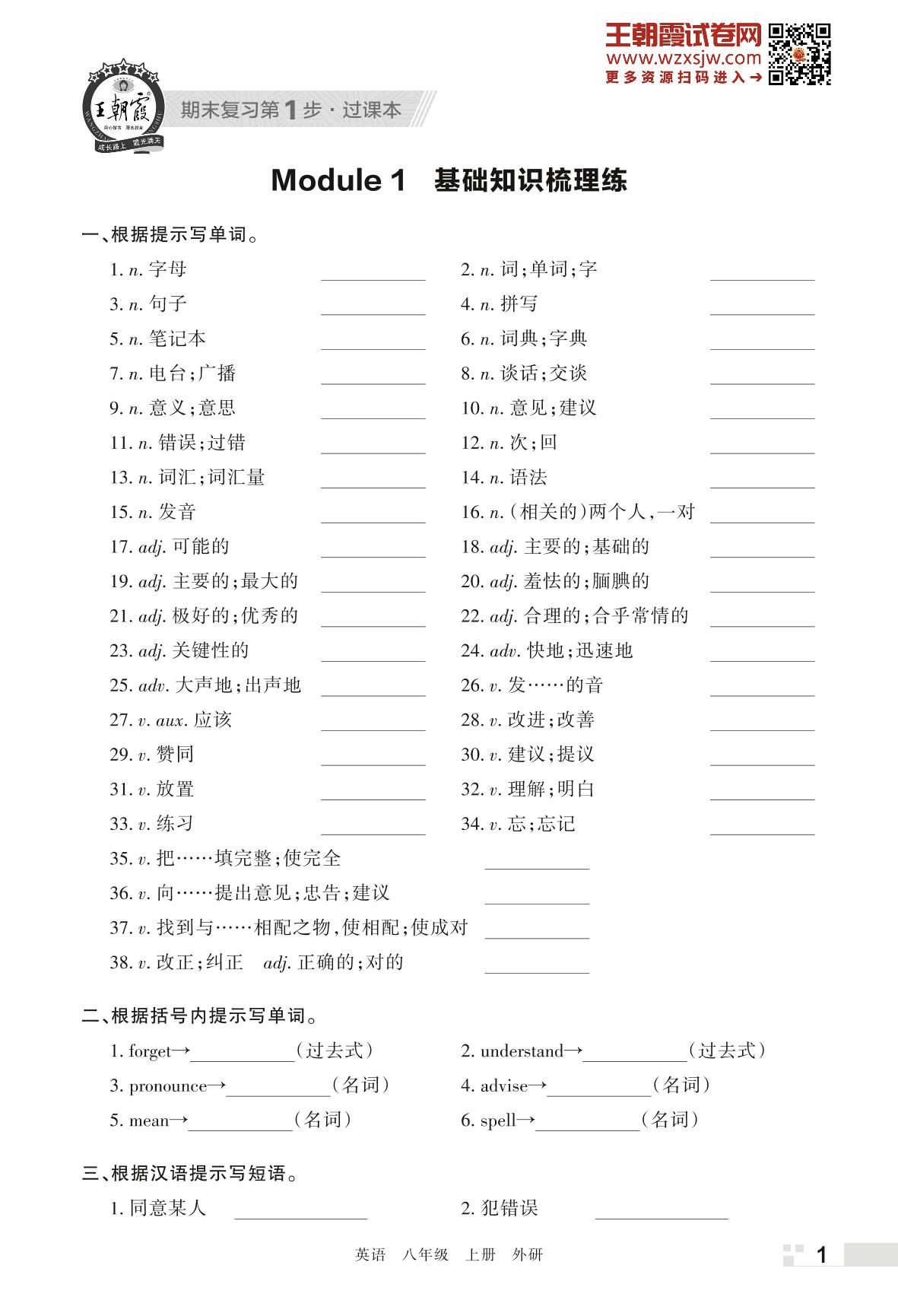 王朝霞期末过课本——Module 1 基础知识梳理练八年级上册英语(外研版)