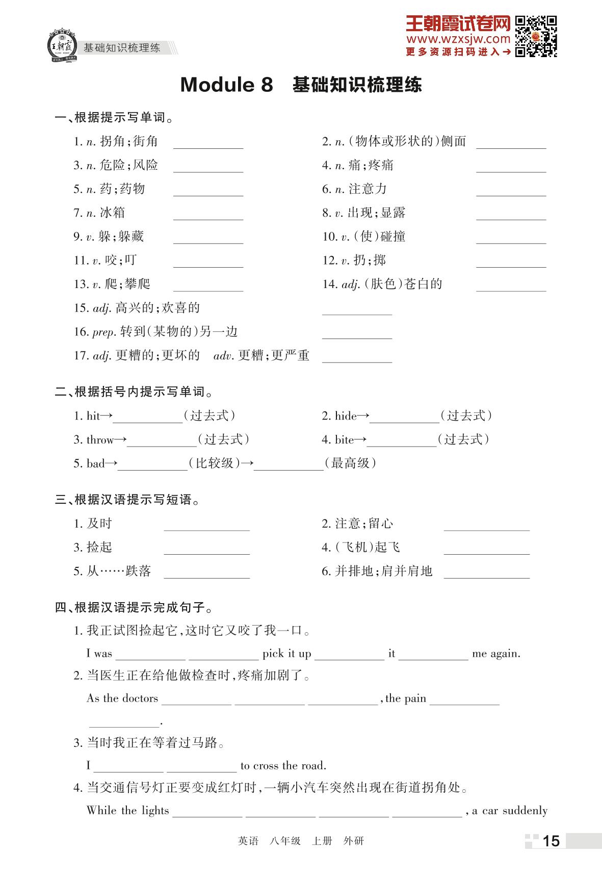 王朝霞期末过课本——Module 8 基础知识梳理练八年级上册英语(外研版)