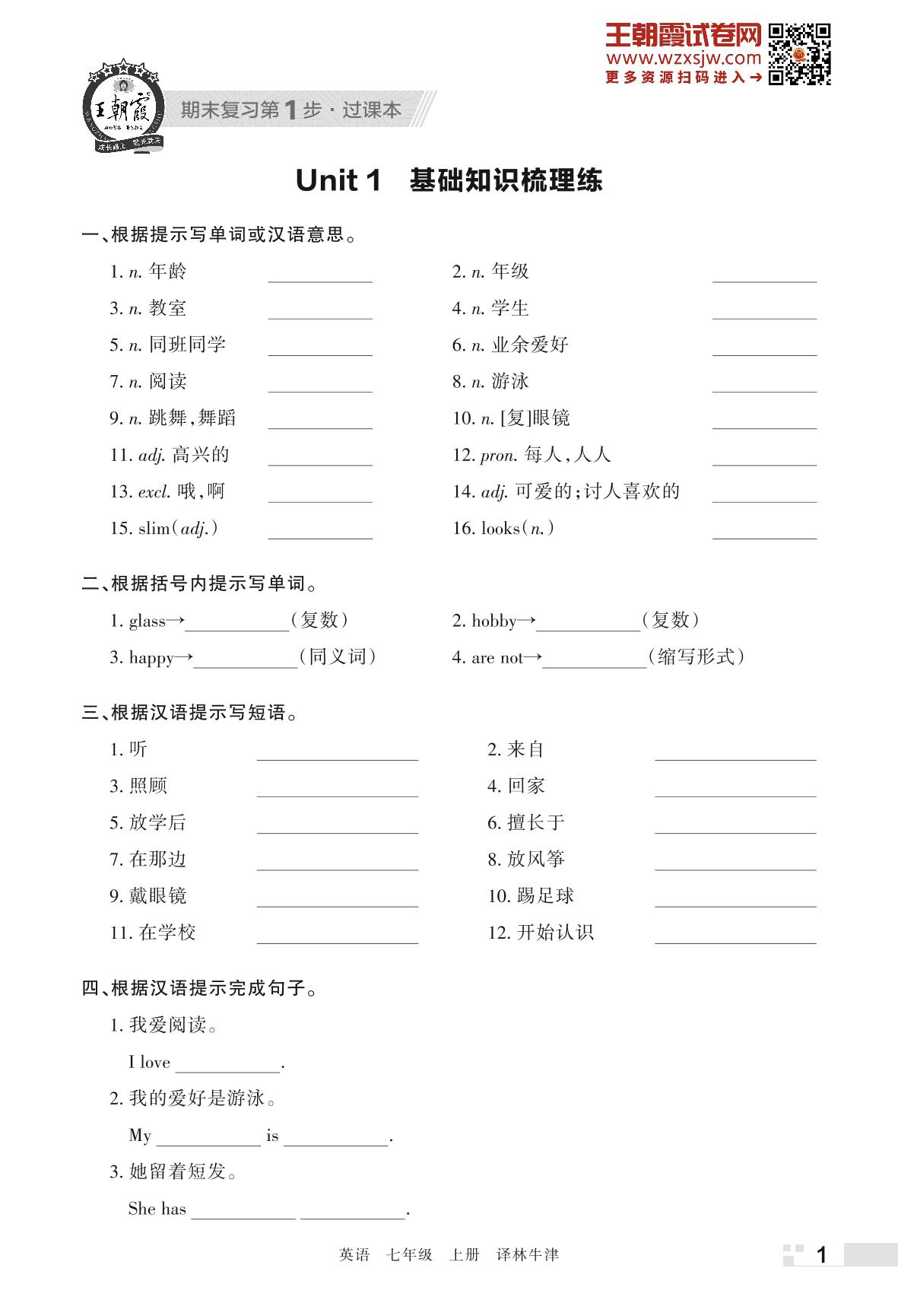 王朝霞期末过课本——Unit 1 基础知识梳理练七年级上册英语(译林牛津版)_R221124155540174