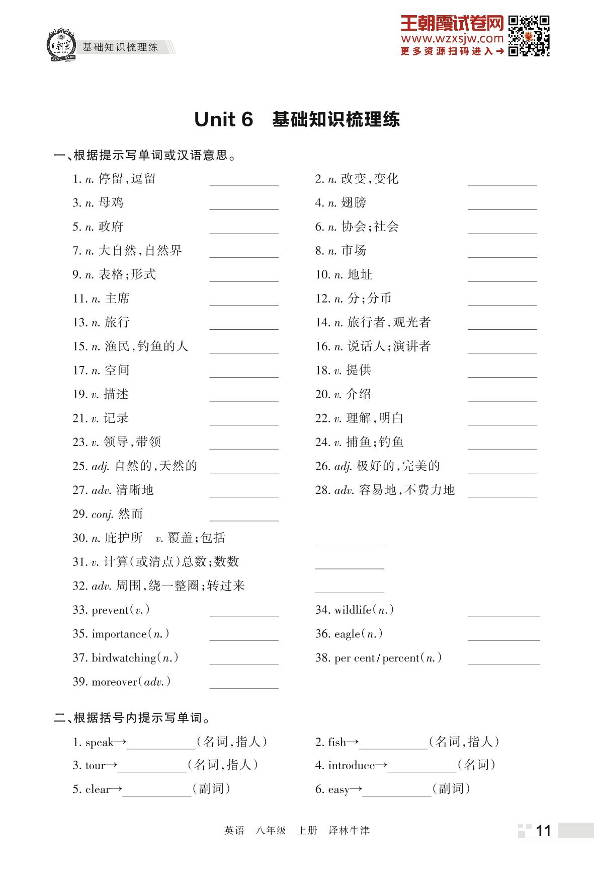 王朝霞期末过课本——Unit 6 基础知识梳理练八年级上册英语(译林牛津版)_R221124160309812