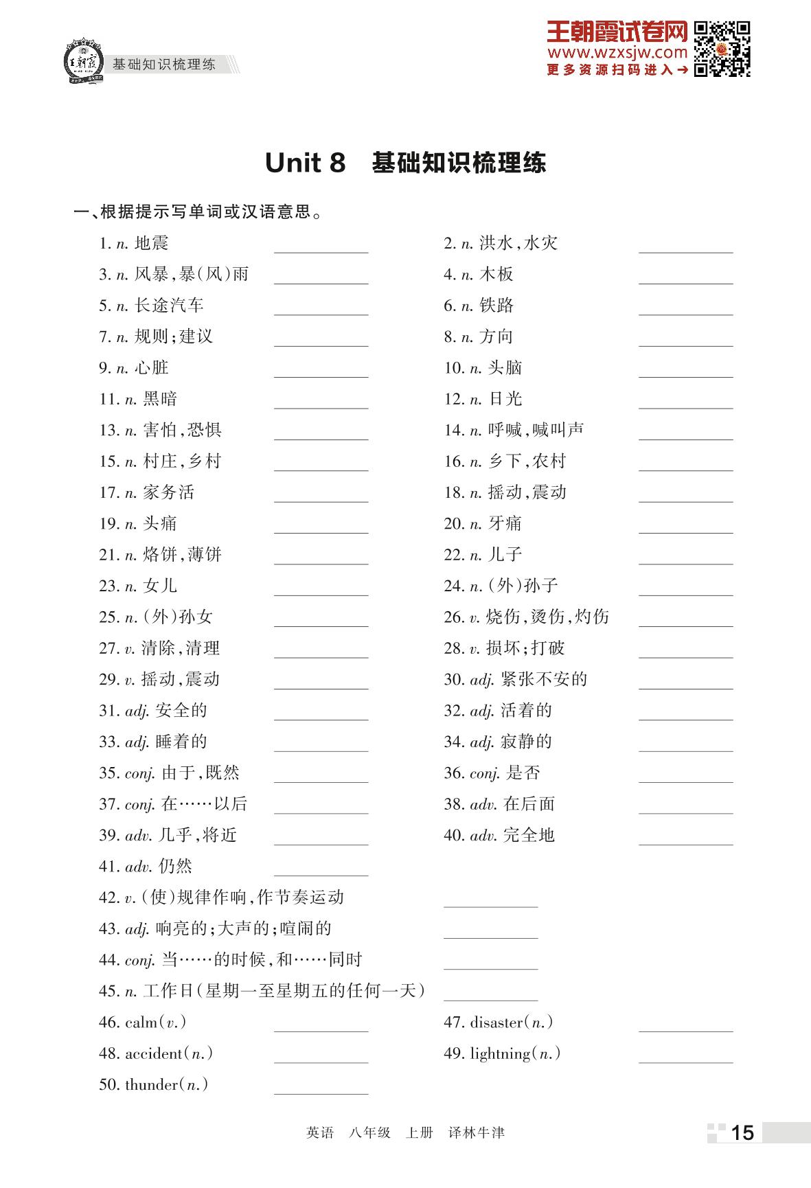 王朝霞期末过课本——Unit 8 基础知识梳理练八年级上册英语(译林牛津版)_R221124160309402