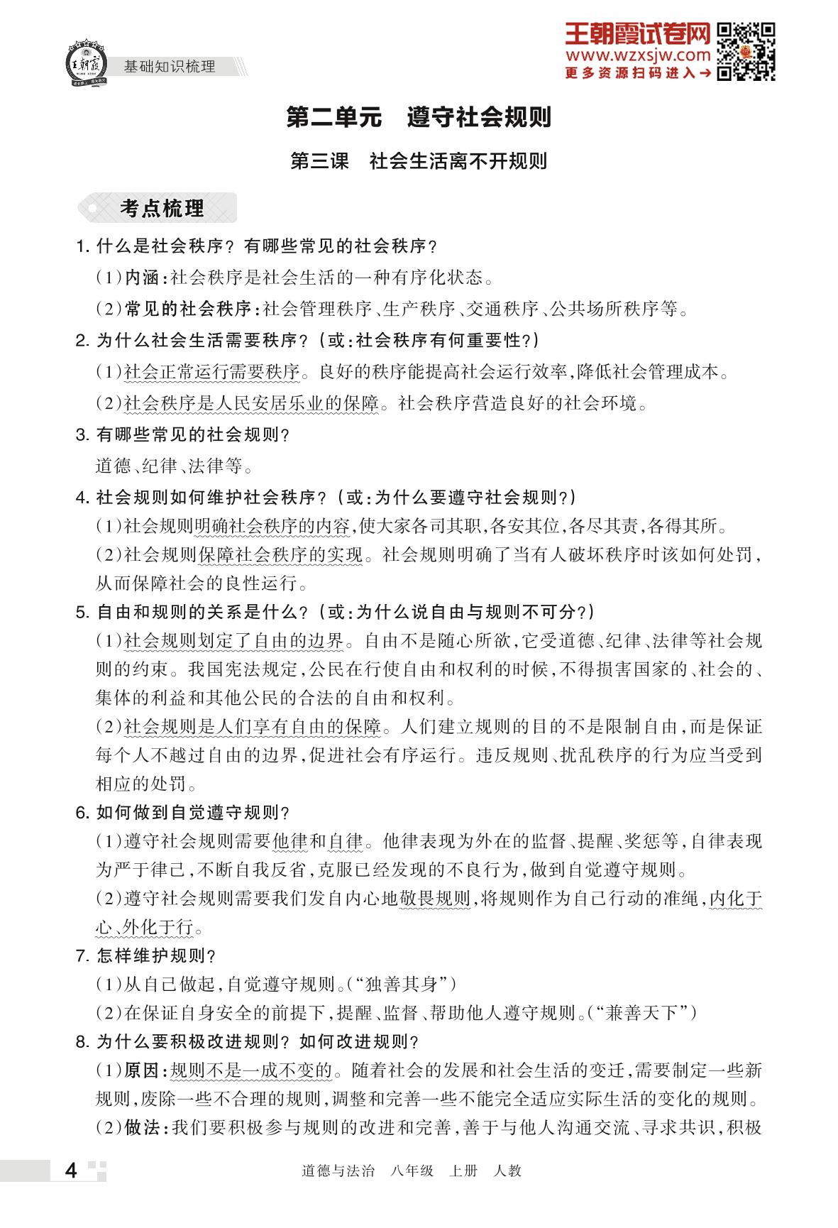 王朝霞期末过课本——第二单元 遵守社会规则八年级上册道德与法治(人教版)_R221124162559592