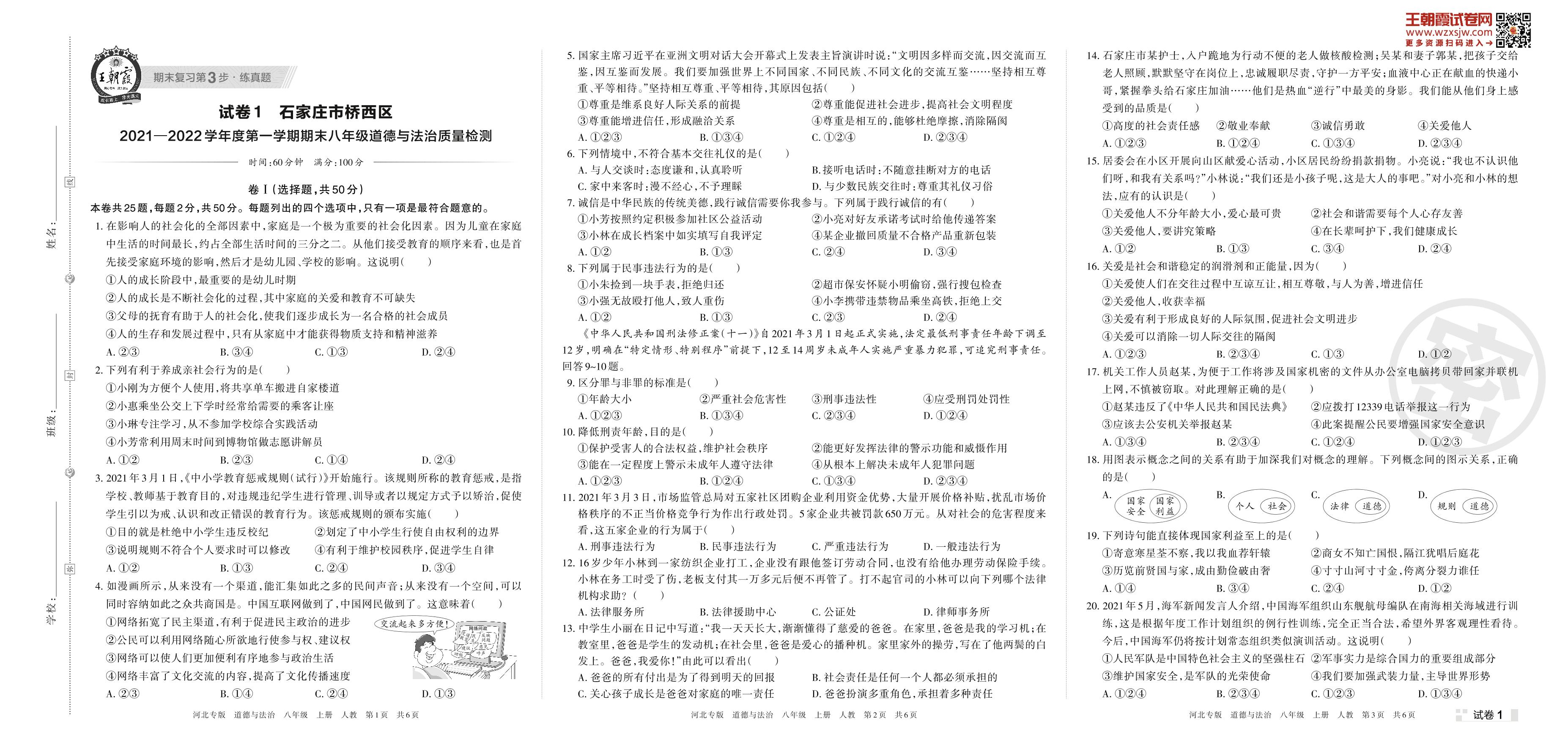 石家庄市桥西区2021—2022学年度第一学期期末八年级道德与法治质量检测(人教版)【1】