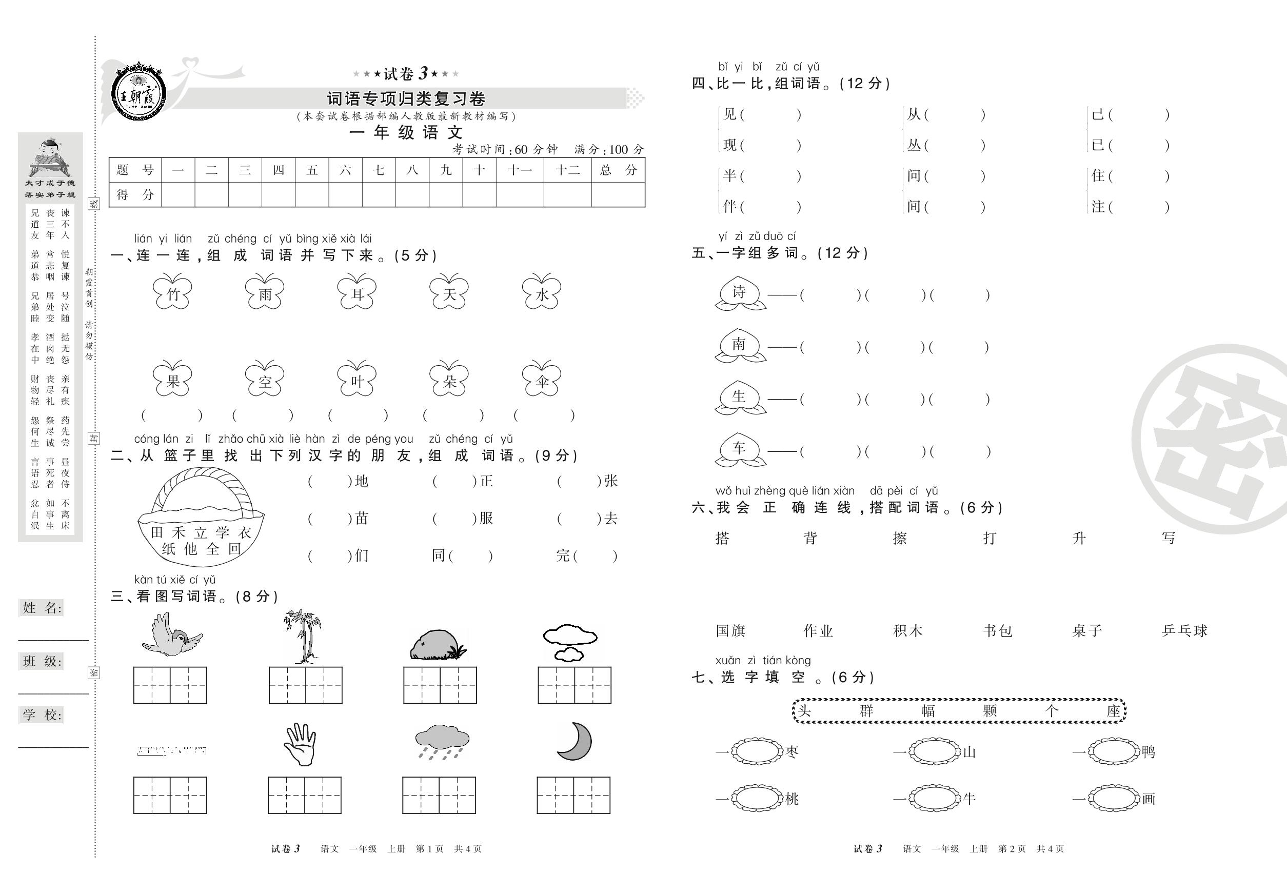 王朝霞期末专项卷一年级上册语文(人教版)_R210731184943【3】