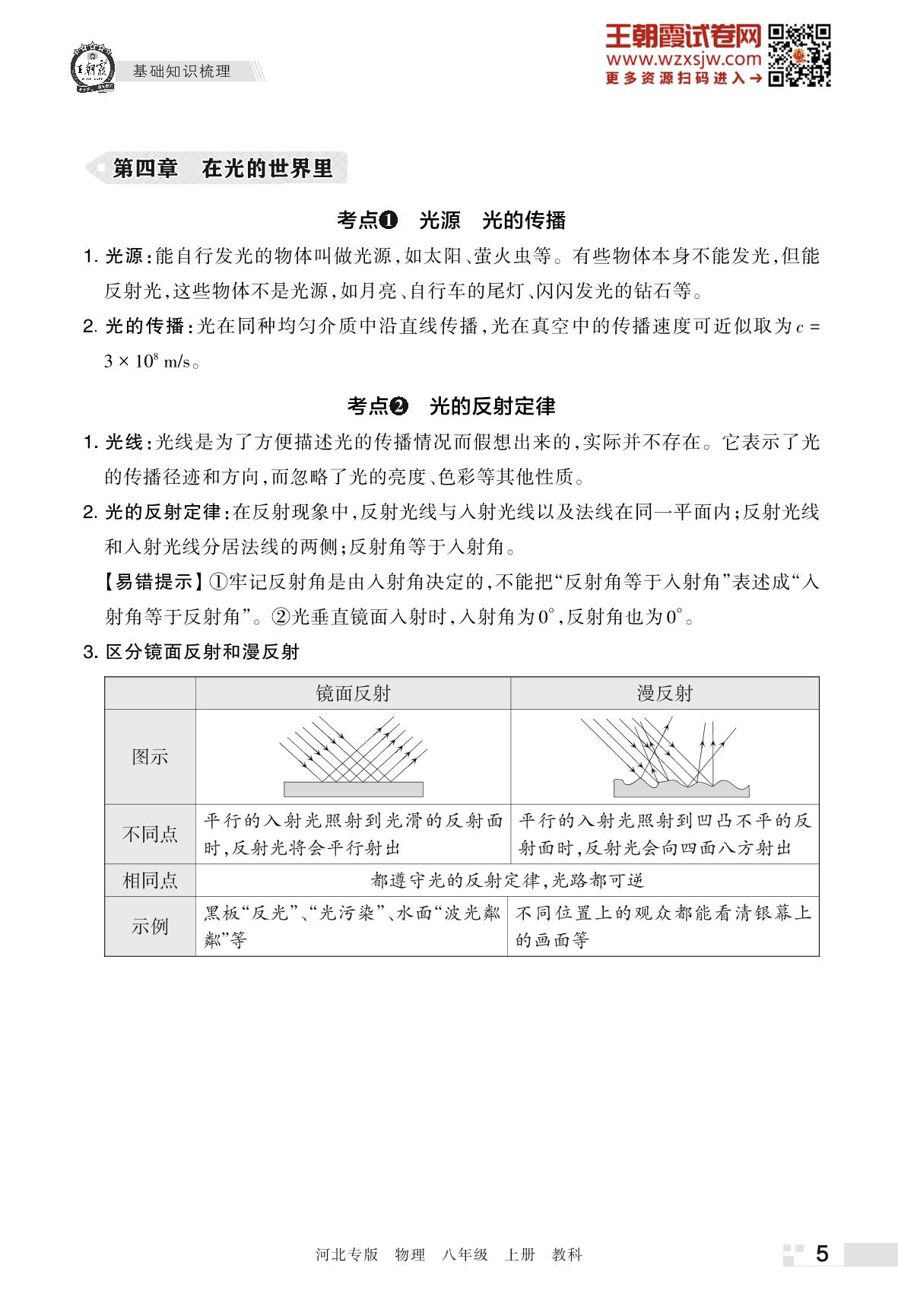 王朝霞期末知识梳理——第四章 在光的世界里八年级上册物理(教科版)