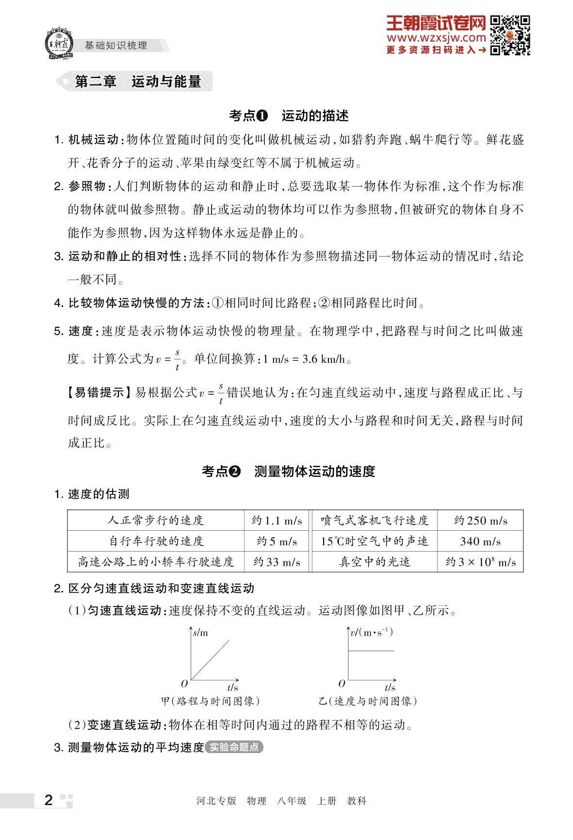王朝霞期末知识梳理——第二章 运动与能量八年级上册物理(教科版)