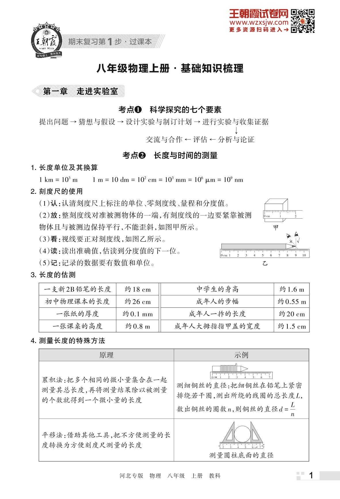 王朝霞期末知识梳理——第一章 走进实验室八年级上册物理(教科版)
