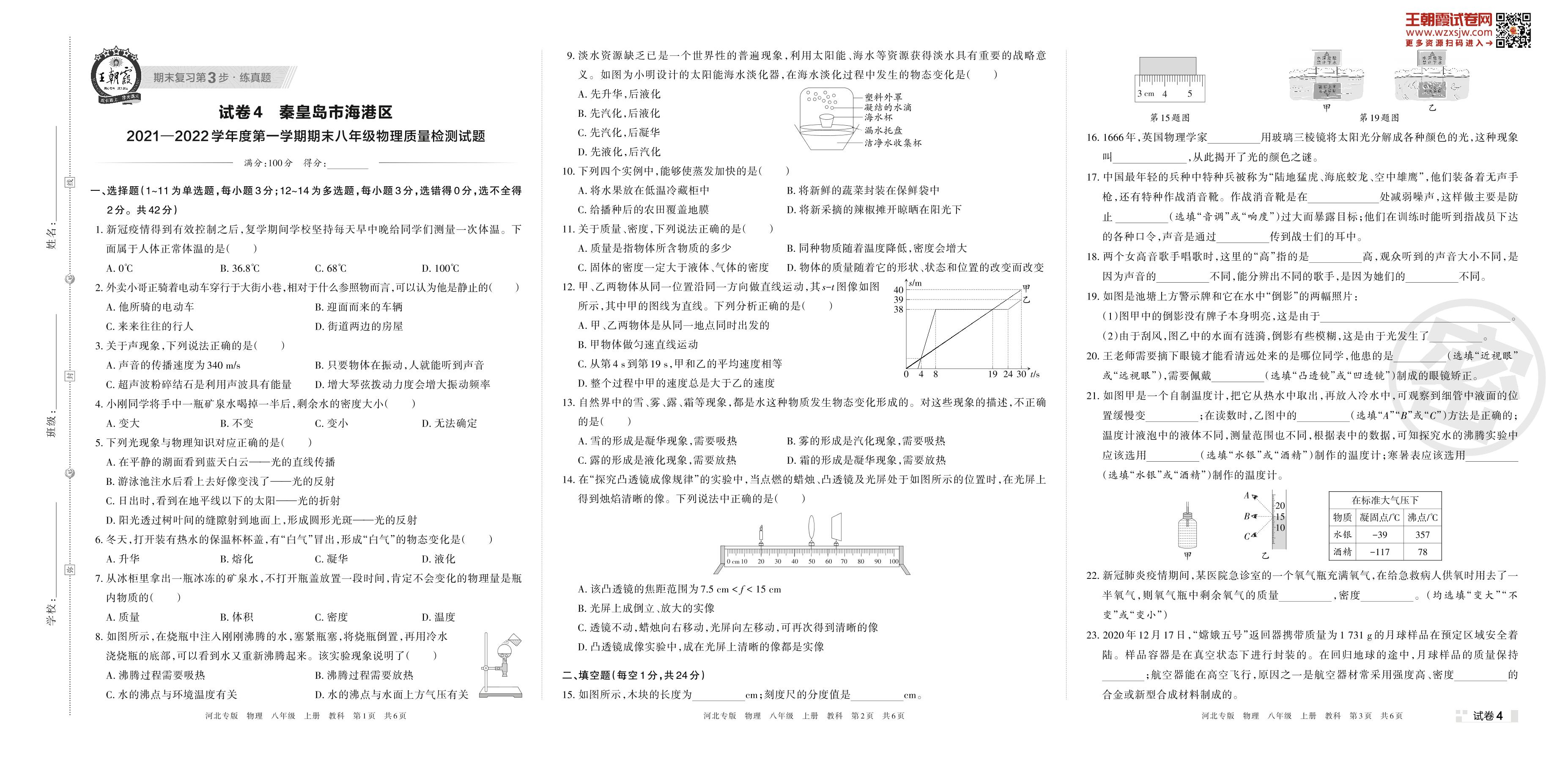 秦皇岛市海港区2021—2022学年度第一学期期末八年级物理质量检测试题(教科版)【4】